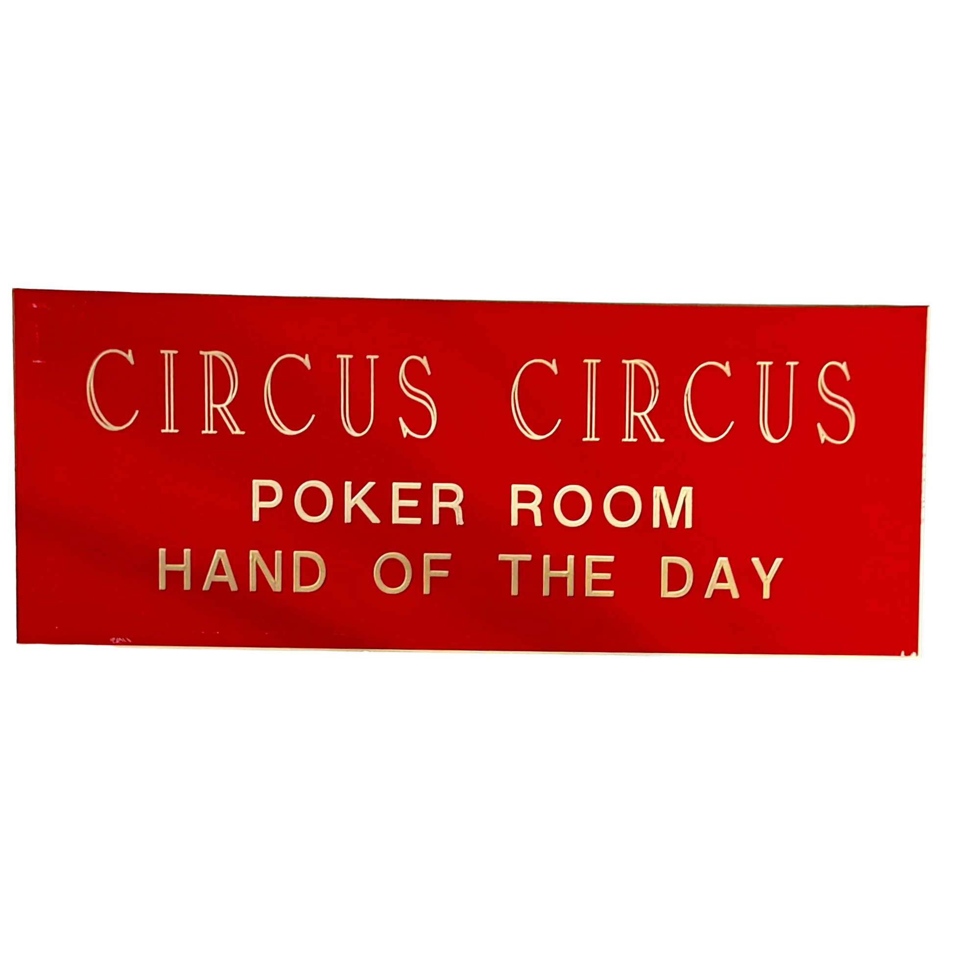 A bold flash of vintage Vegas. The Circus Circus Poker Room Acrylic Memorabilia brings back the thrill of high-stakes play under the big top. Once hung above the tables, it marked the lucky hand of champions — a rare collectible from the heart of a casino that never slept.