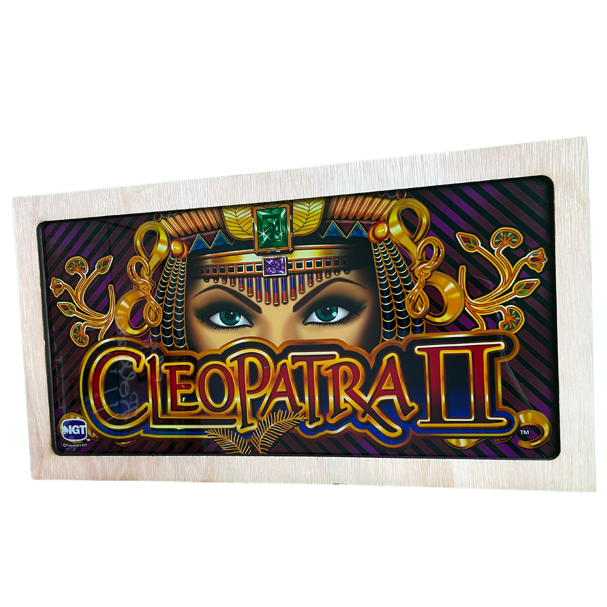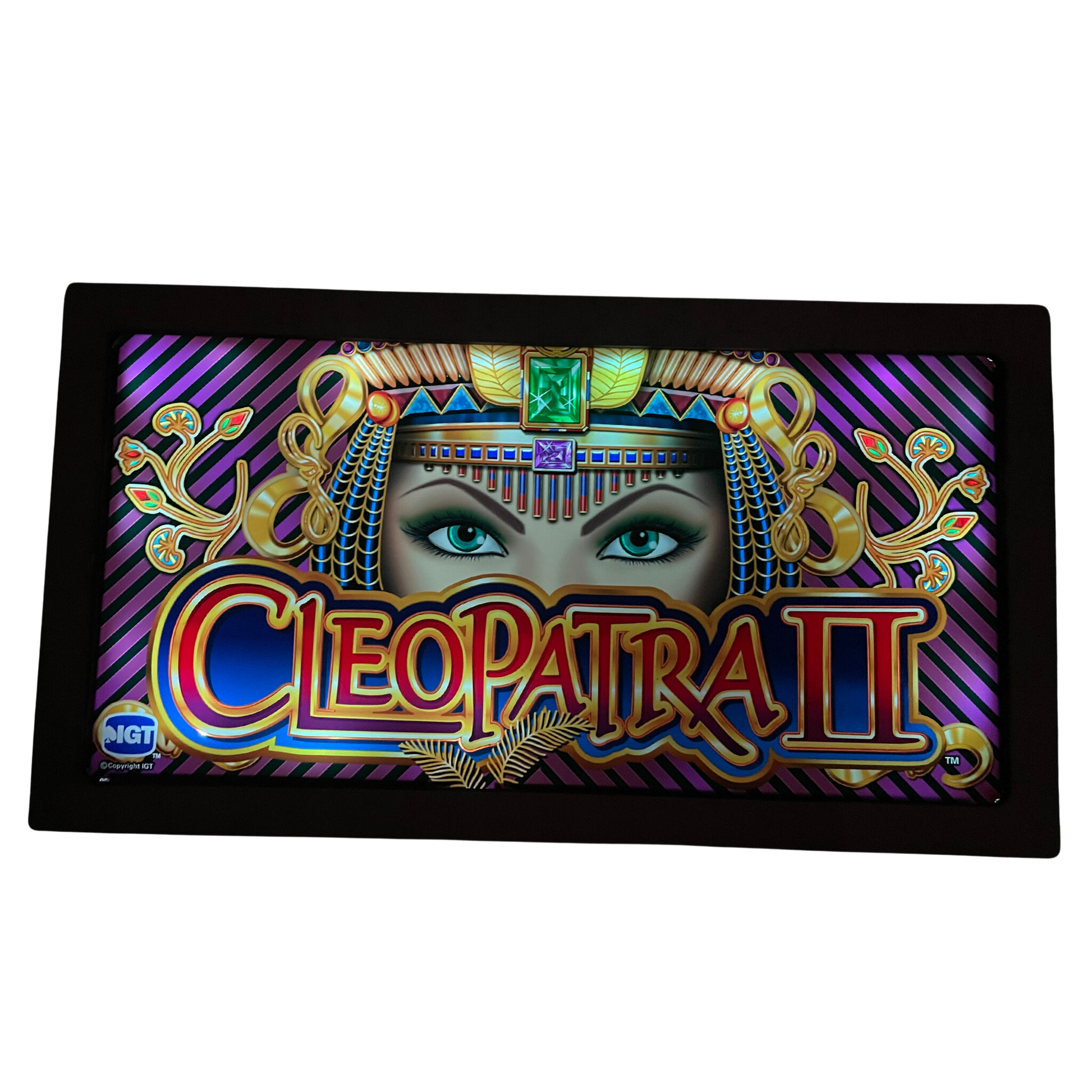 Enhance your collection with this Cleopatra II Vintage Slot Machine Glass, featuring the iconic and mesmerizing gaze of the legendary queen adorned with intricate Egyptian-inspired jewelry and rich, royal colors. The bold gold lettering against a striking purple and black background creates a luxurious aesthetic that embodies the allure of ancient Egypt. Perfect for collectors, game room enthusiasts, or those who appreciate timeless casino decor, this piece will reign supreme in any display. Bring the magic of Cleopatra to your collection today!