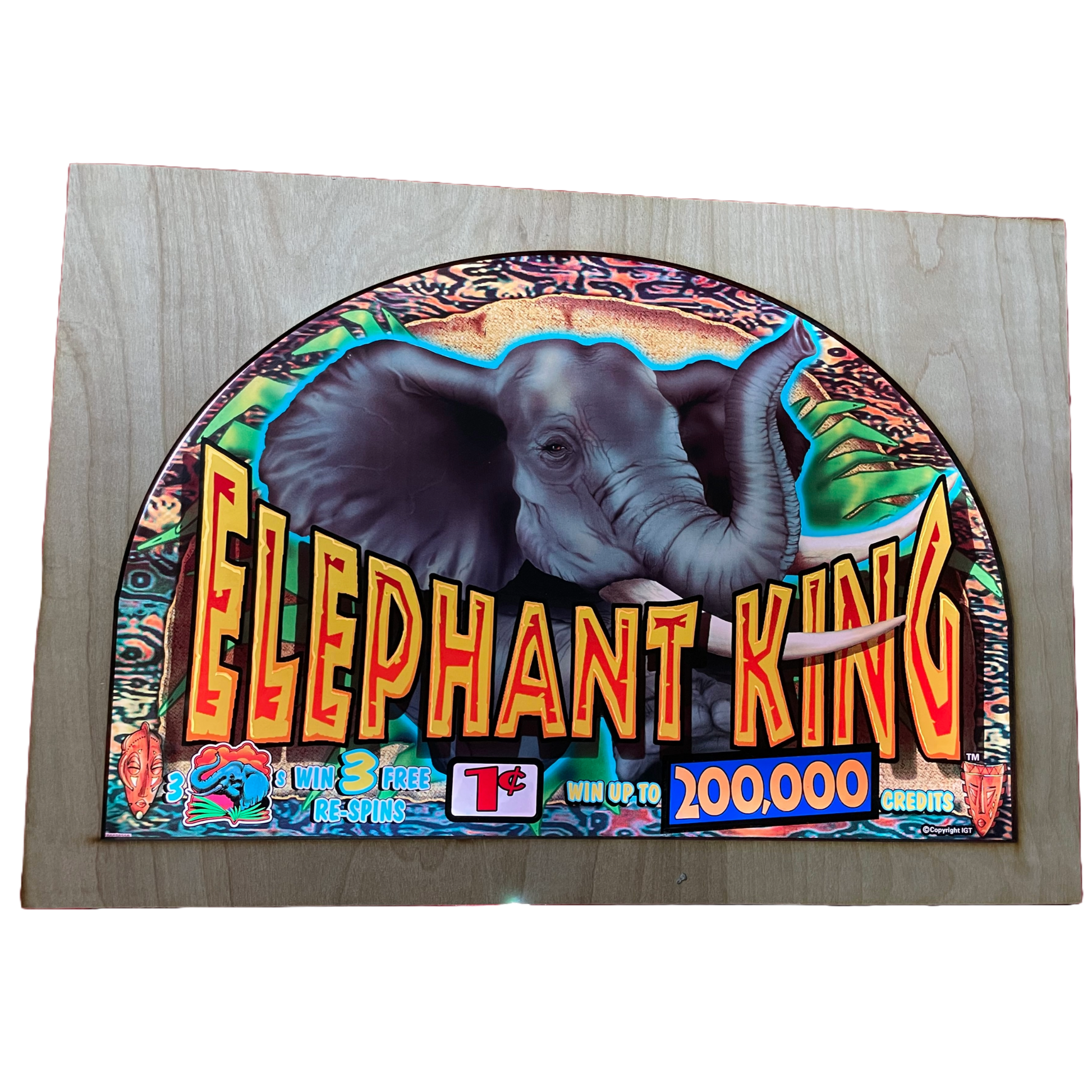 The "Elephant King" slot machine boasts a visually striking design, centered around the majestic and powerful image of an elephant. The display features a large, realistic elephant head in the center, set against a colorful and intricate background that evokes the exotic landscapes of Africa.