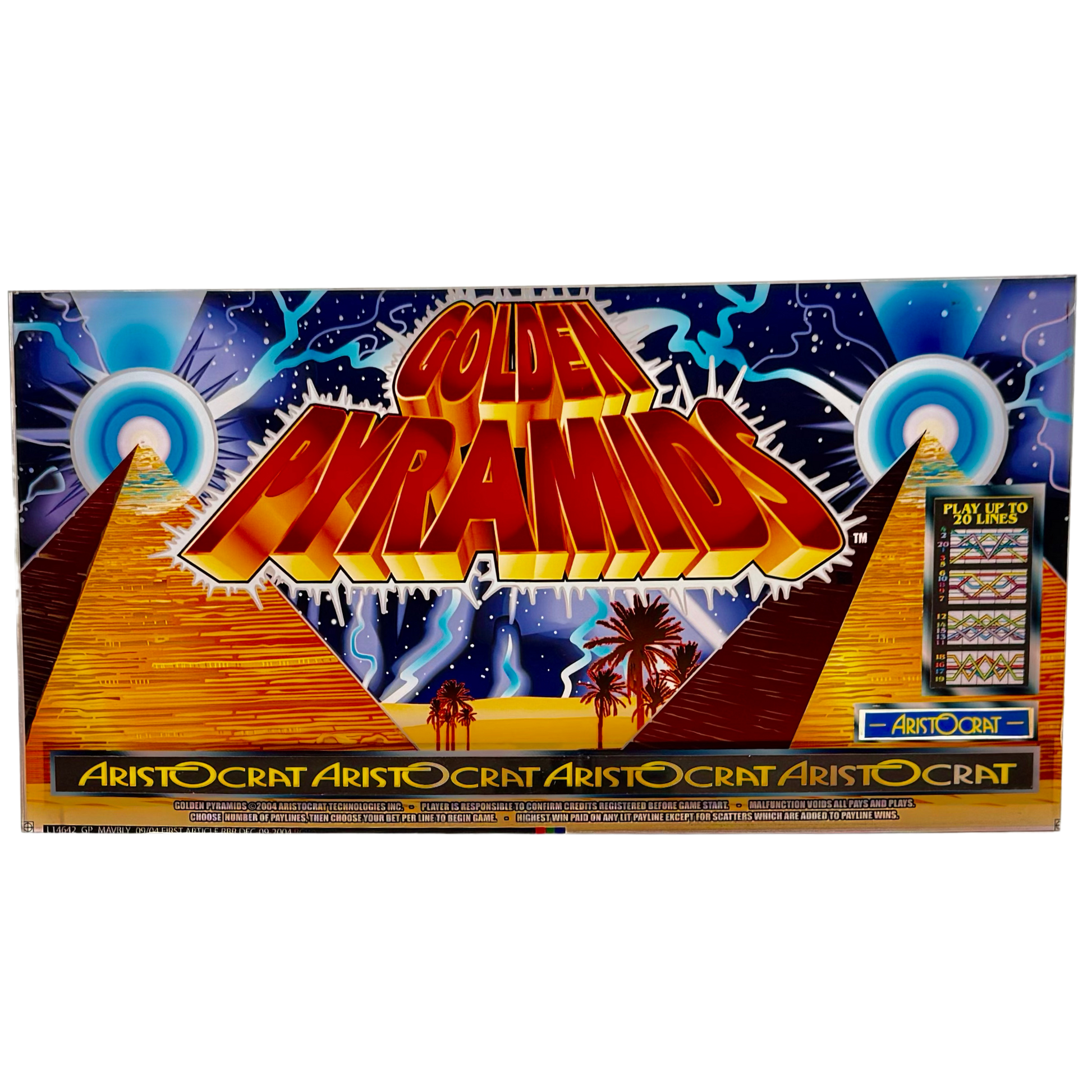 The Golden Pyramids Slot Retro Acrylic glows with mystique and celestial energy. Radiant beams shoot from towering golden pyramids against a twilight sky, channeling ancient wonder into vibrant vintage flair. With bold lettering and electrified colors, this piece is perfect for collectors drawn to Egyptian themes and retro slot machine nostalgia. A striking centerpiece for any display or themed decor.