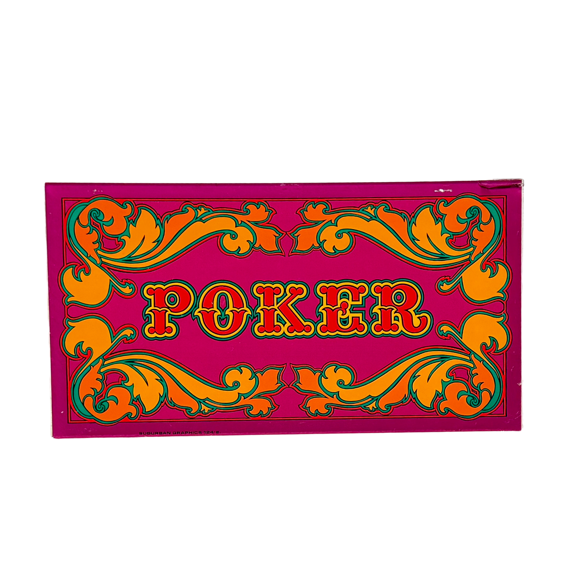 A bold splash of magenta, swirling golden flourishes, and classic lettering make the Poker Slot Glass a dazzling nod to vintage casino flair—perfect for adding a pop of color and a deal of nostalgia to any collection.