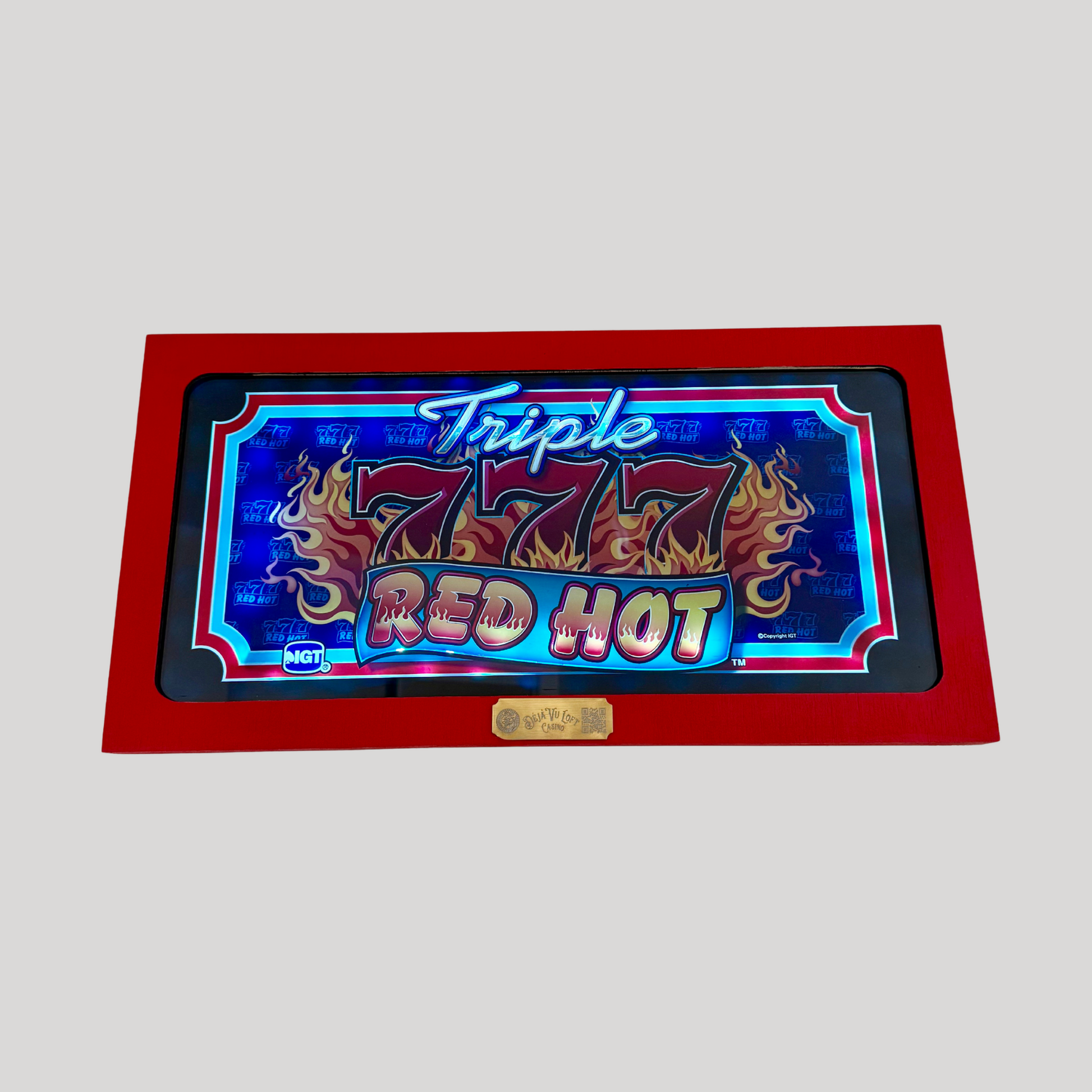 The Triple 777 Red Hot Slot Glass is a bold and fiery piece that embodies the thrill of classic slot gaming. Featuring bright red triple sevens engulfed in flames, this design exudes energy and excitement. The vivid contrast of deep blues and reds, along with the dynamic lettering, makes this slot glass a standout addition for collectors, casino enthusiasts, or those looking to add a nostalgic, high-stakes vibe to their decor.