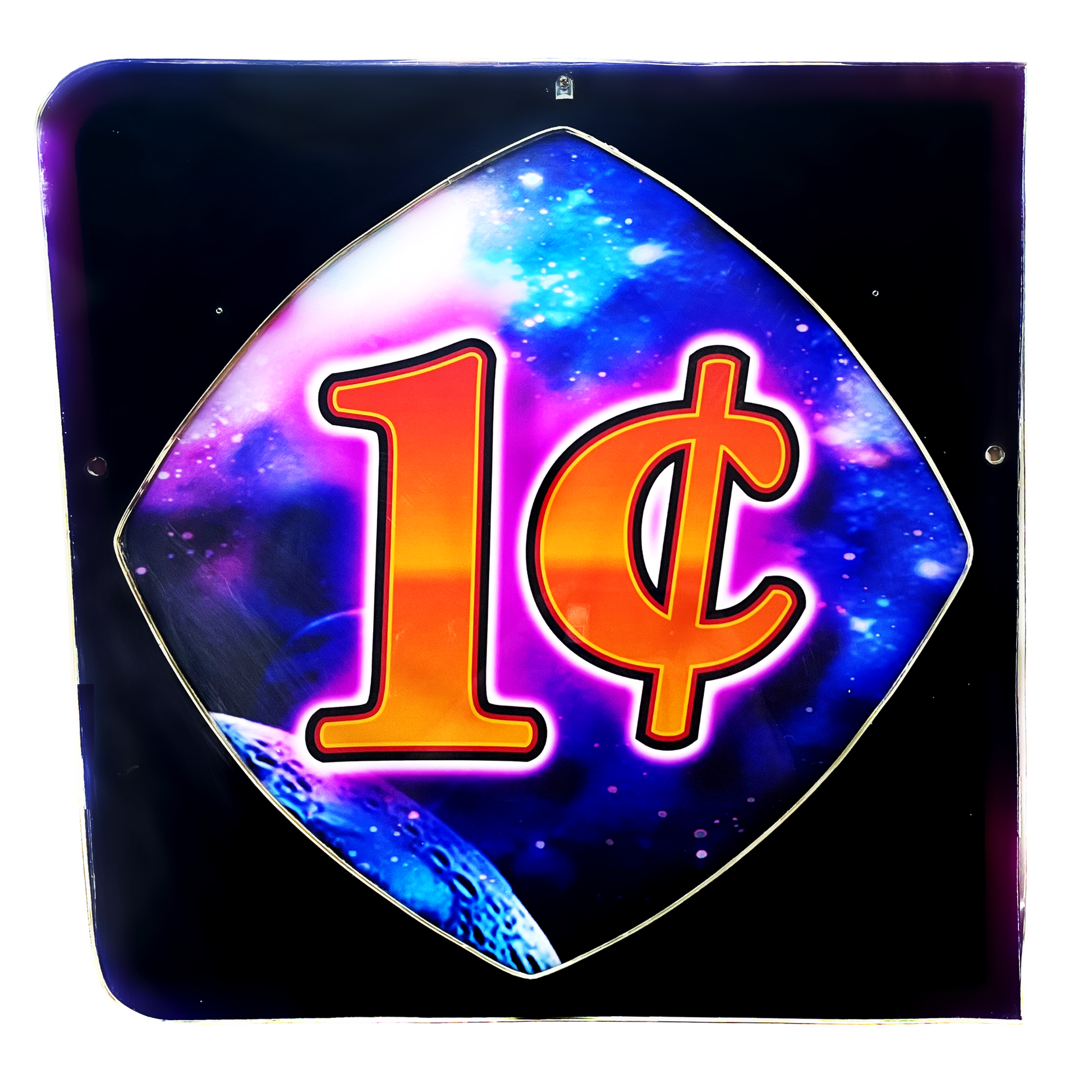 The 1¢ SuperNova Slot Retro Acrylic is a vibrant and cosmic-themed piece featuring a bold "1¢" symbol set against a stunning space-inspired background. Swirls of deep blues, purples, and fiery oranges create a mesmerizing celestial atmosphere, while the large denomination icon takes center stage with its glowing, eye-catching design. Perfect for collectors, casino décor enthusiasts, or anyone looking to add a touch of cosmic energy to their space, this piece captures the excitement and nostalgia of classic slot machines with a futuristic twist.
