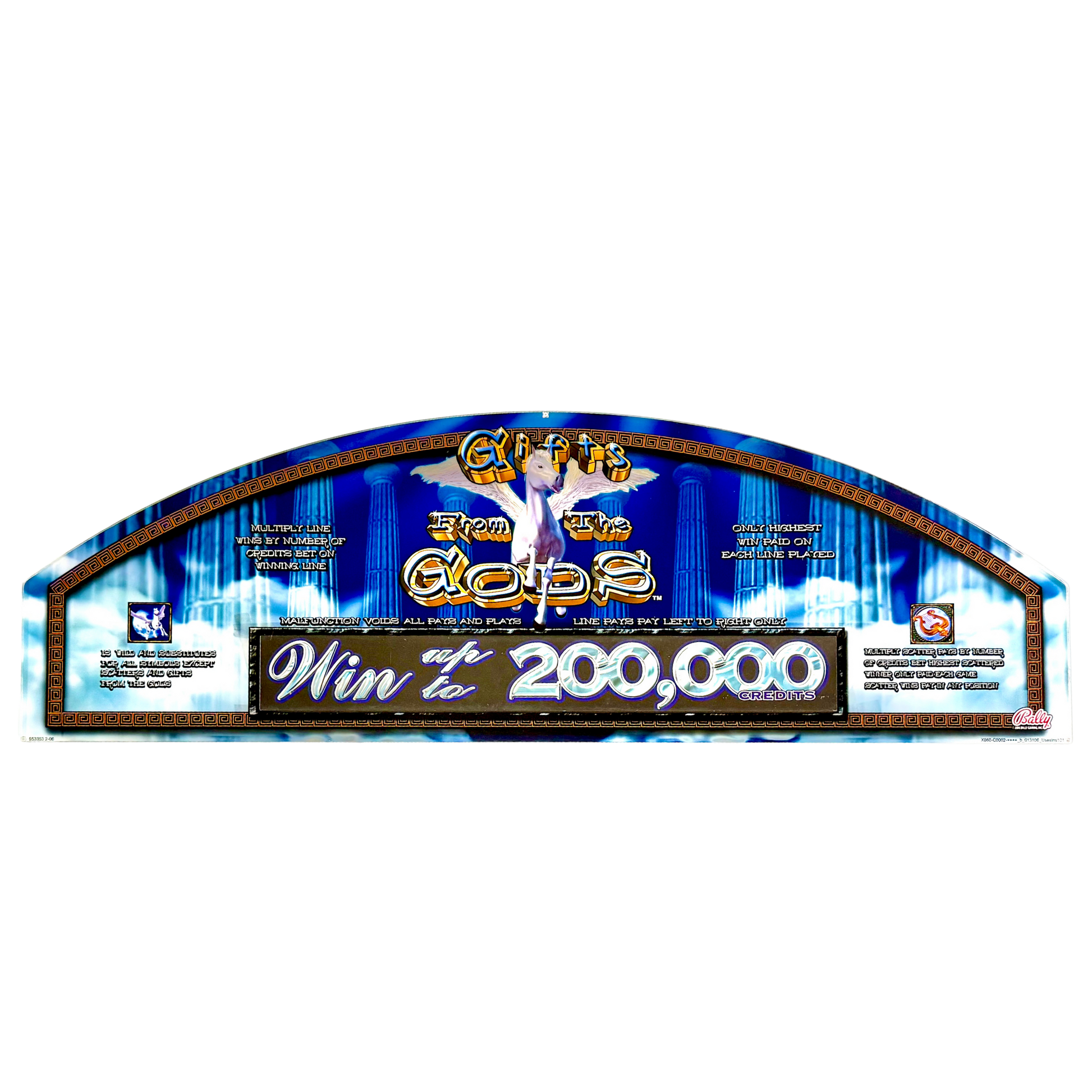 Introducing the Gifts from the Gods Slot Glass, an awe-inspiring tribute to the grandeur of ancient mythology. This stunning piece showcases a divine celestial theme with towering Greek columns, heavenly figures, and a rich blue and gold color scheme that exudes power and elegance. The intricate details and ethereal glow make it a perfect centerpiece for collectors who appreciate the allure of legendary themes. Whether you're a history buff, a vintage slot machine enthusiast, or simply looking to add a touch of divine opulence to your decor, the Gifts from the Gods Slot Glass is a timeless treasure that captures the essence of myth and fortune.