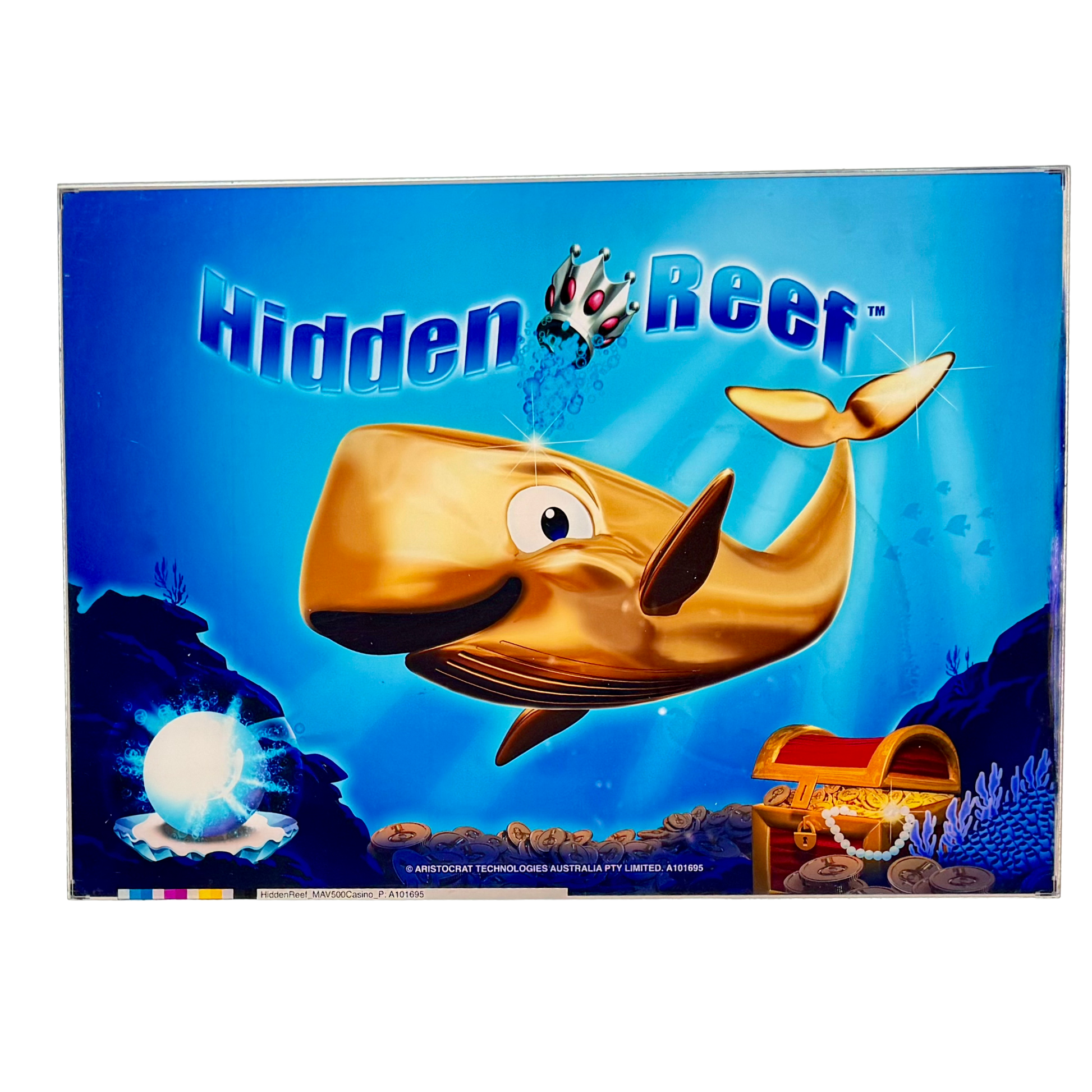 A smiling whale, a sparkling pearl, and a chest of treasures beneath the tide. The Hidden Reef Slot Retro Acrylic invites you to dive deep into childhood whimsy and underwater adventure—where ocean magic meets jackpot dreams.