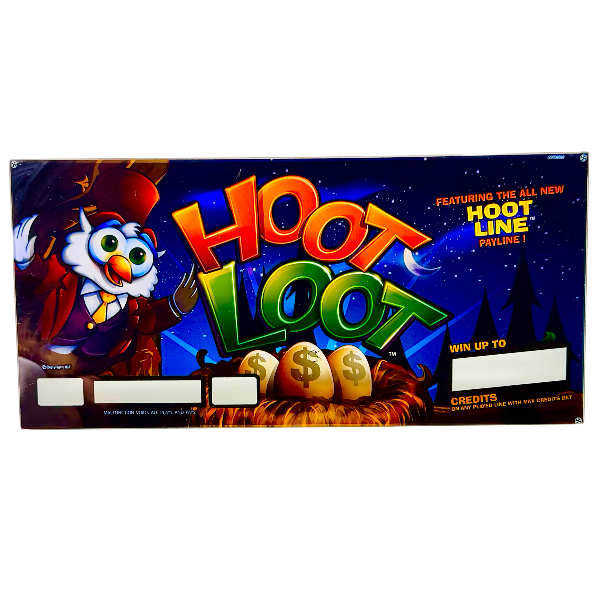 The Hoot Loot Slot Glass is a lively and whimsical piece featuring a charmingly dressed owl, complete with a top hat and suit, adding a playful touch of sophistication. Set against a nighttime forest backdrop with glowing dollar-sign eggs in a nest, the design brings an air of mystery and fortune. The bold, colorful typography enhances the fun, making this a standout piece for collectors, casino décor enthusiasts, or those who appreciate lighthearted and nostalgic gaming art. Perfect for adding a quirky yet classic charm to any space.