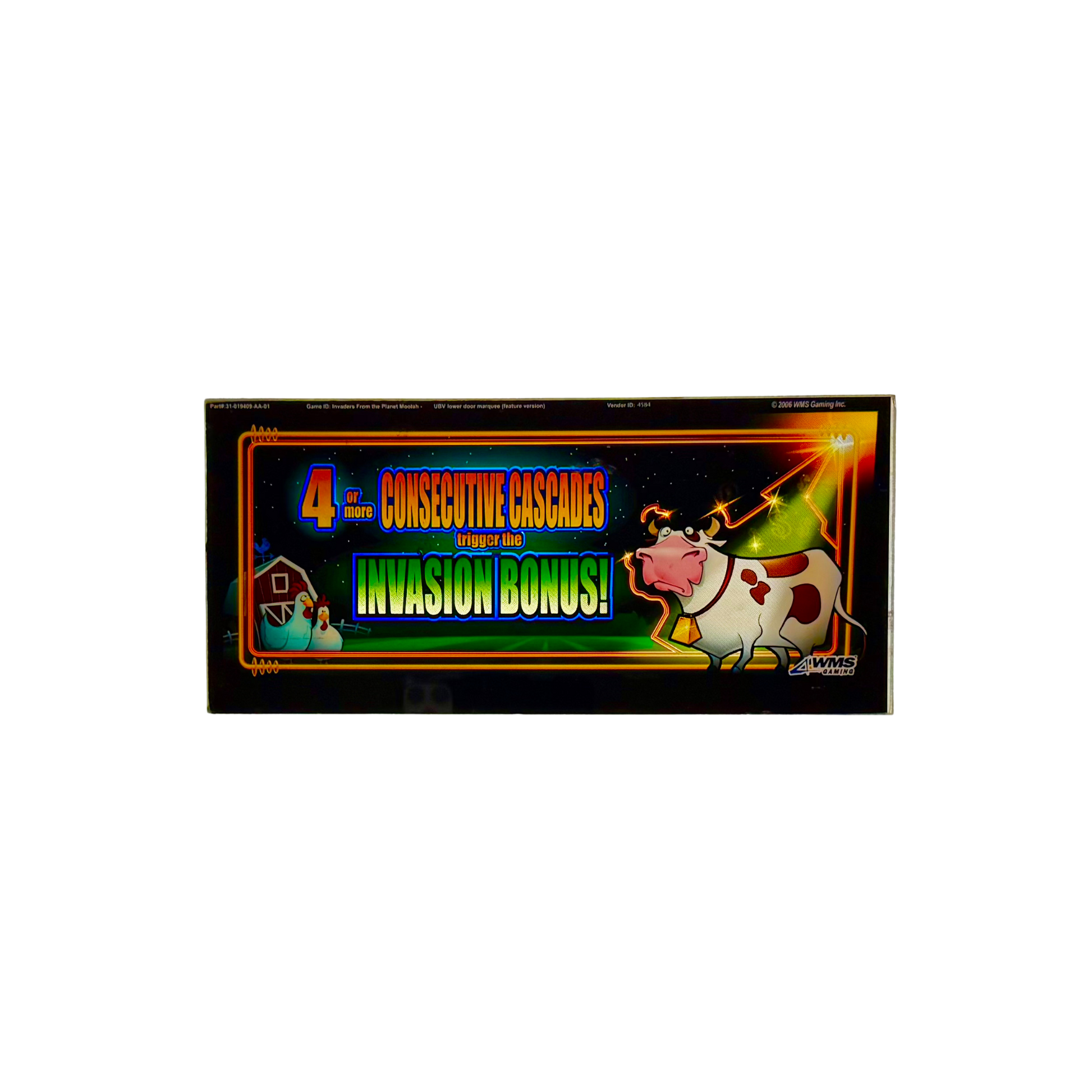 Blast off into intergalactic fun with the Invaders From The Planet Moolah Slot Glass. Featuring alien cows, flying saucers, and cascading reels, this iconic piece from WMS captures the quirky charm of one of the most beloved novelty slots ever created.