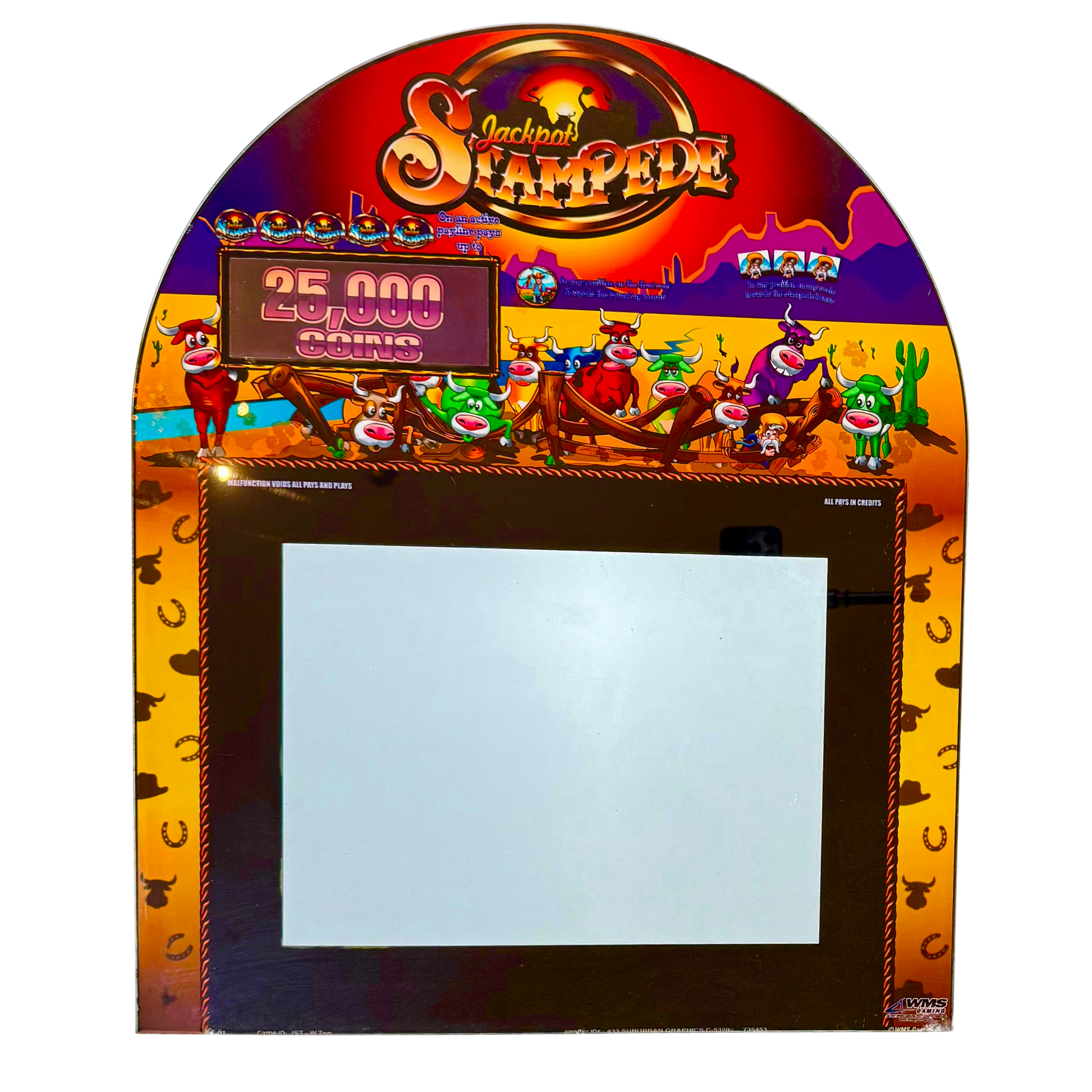 Playful, wild, and full of energy — the Jackpot Stampede Slot Glass captures the spirit of a cartoon cattle drive gone rogue. With its animated cows, desert sunset, and bold western palette, this piece brings a fun frontier flair to any vintage gaming collection.