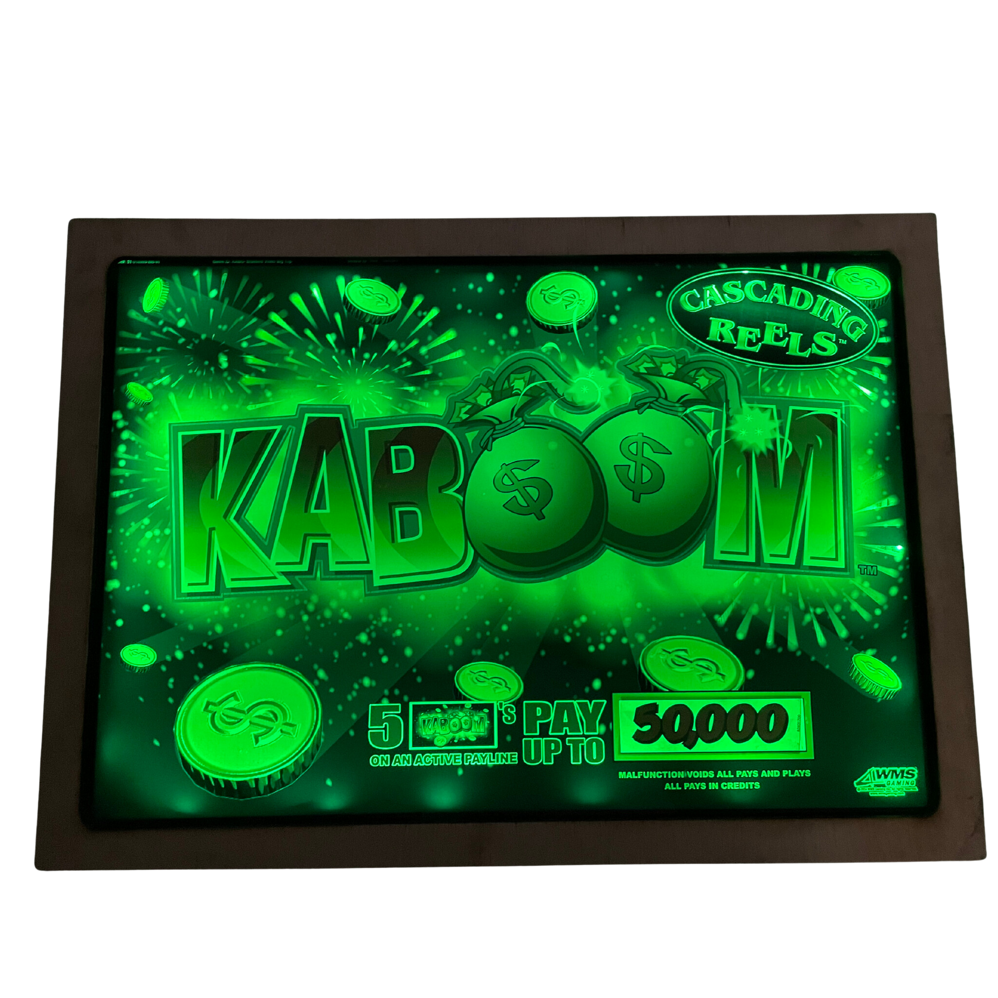 Explode into action with the "Kaboom" slot glass! This electrifying piece features dynamic graphics of bursting fireworks and money bags ready to detonate, capturing the excitement of a big win. The bold red and green lettering stands out against the dazzling background, emphasizing the thrill of hitting the jackpot. With cascading reels and the chance to win up to 50,000 credits, this design promises non-stop excitement. Perfect for game rooms, entertainment spaces, or any area that thrives on high-energy fun, this authentic slot machine glass is a fantastic addition for collectors and vintage decor enthusiasts. Let "Kaboom" add a blast of excitement to your decor, making every moment a celebration!