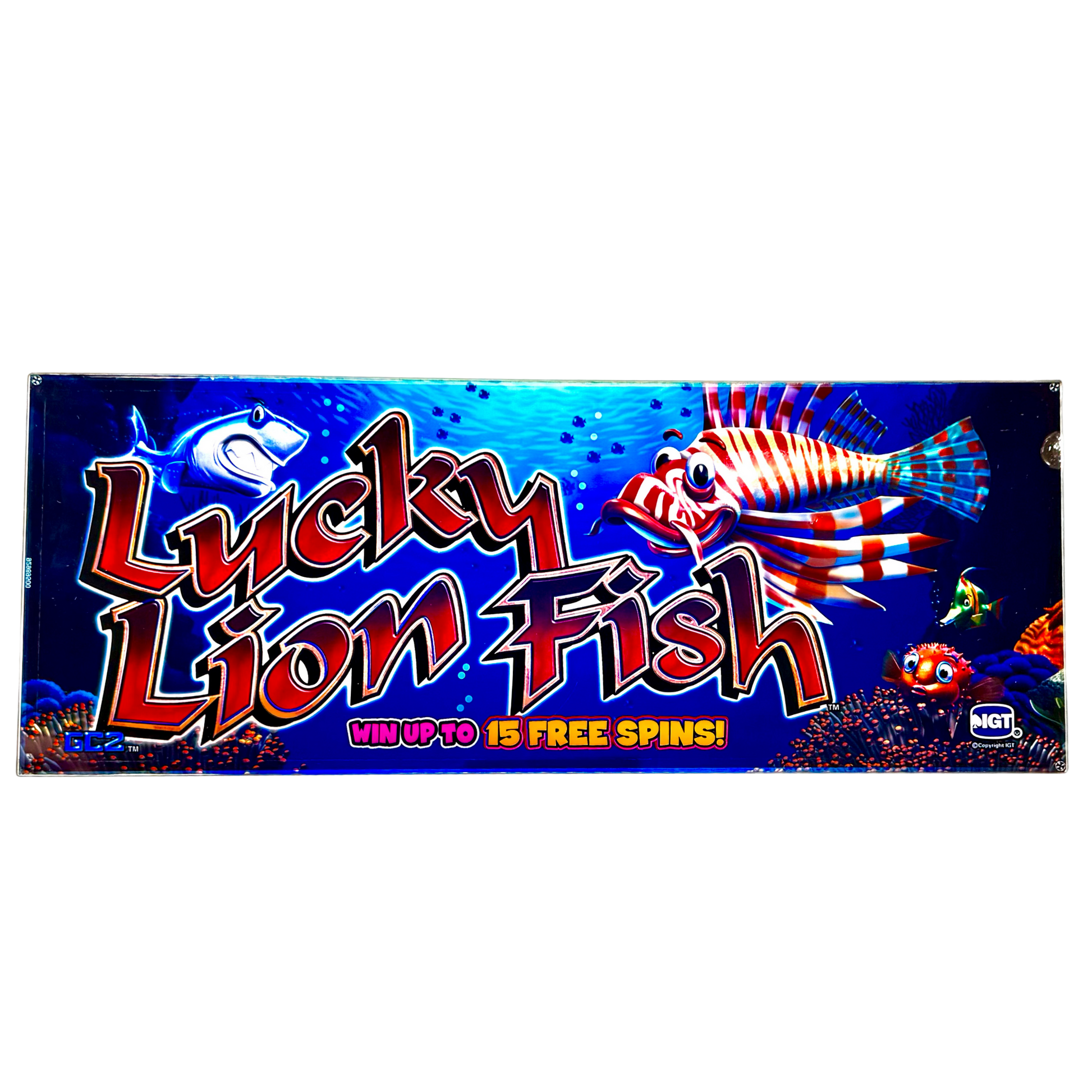 The Lucky Lion Fish Slot Glass is a bold and vibrant piece featuring a striking lionfish set against a deep-sea backdrop teeming with marine life. The bright reds, blues, and intricate details create a sense of underwater adventure, enhanced by the playful shark and tropical fish in the scene. The dynamic typography and high-energy design make this an exciting addition for collectors, casino décor enthusiasts, or anyone looking to bring a splash of oceanic thrill to their space.
