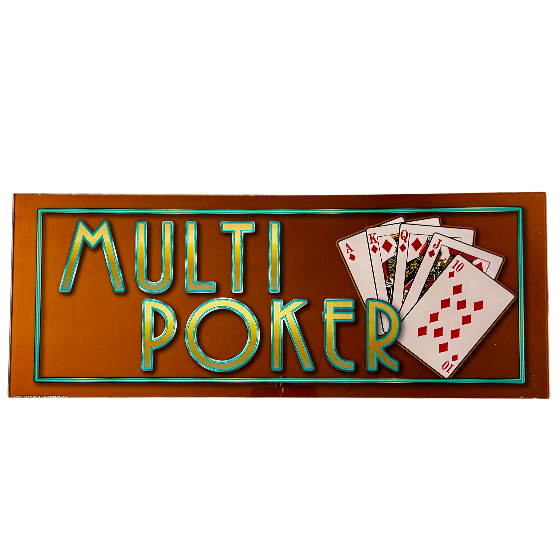 The Multi Poker Slot Glass features a striking vintage design with a warm brown background, accented by neon-style blue lettering and a classic royal flush in diamonds. This piece embodies the golden era of casino gaming, making it a fantastic addition for collectors, poker aficionados, or those looking to add a touch of classic casino charm to their space. Its retro aesthetic pairs well with game rooms, man caves, or bar décor, offering a nostalgic nod to the heyday of poker and slots in the casino world.