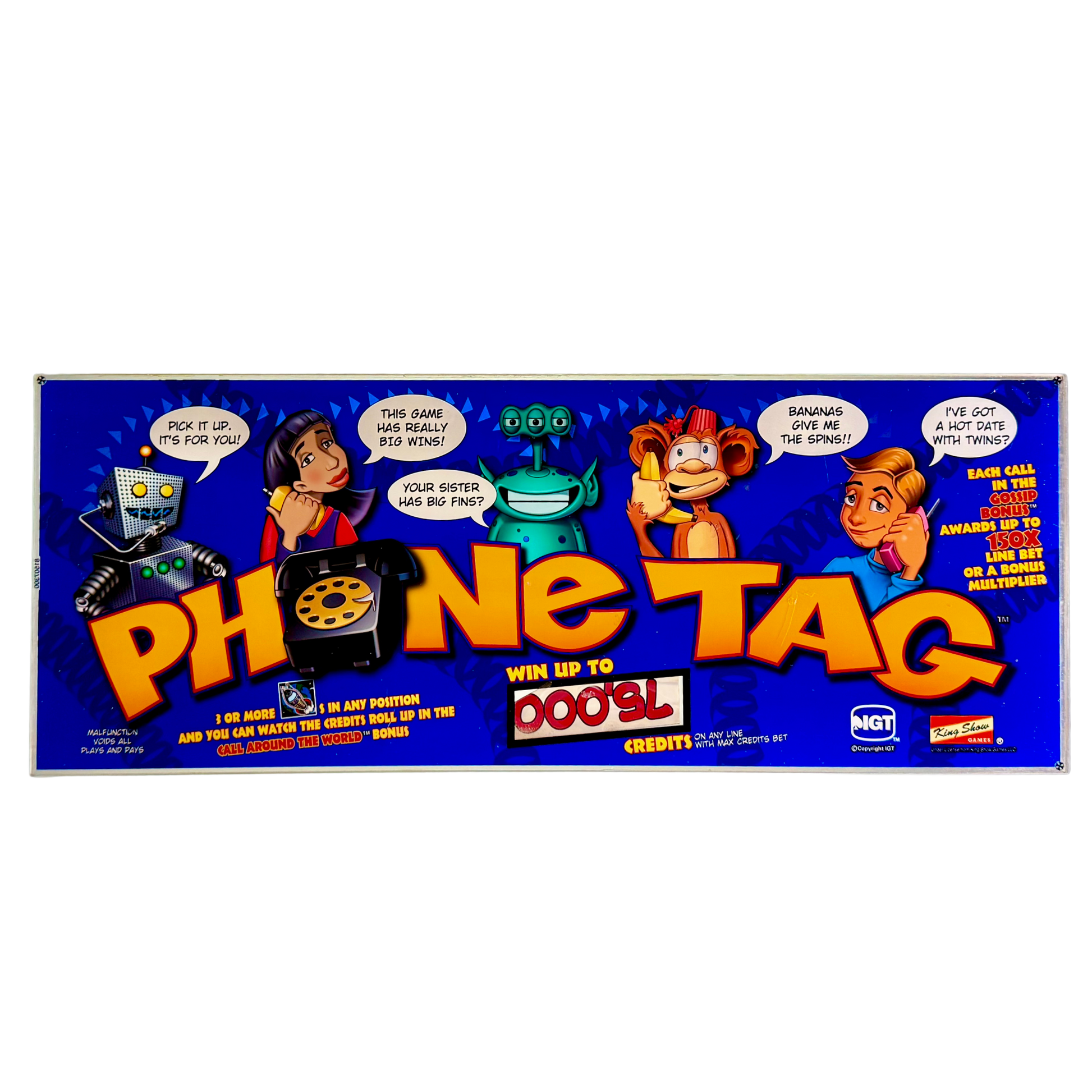 Answer the call for fun with the Phone Tag Vintage Slot Machine Glass! This playful and colorful design features quirky cartoon characters and a classic rotary phone, capturing the nostalgic charm of old-school communication. The vibrant blue background and bold yellow lettering make this piece pop, adding a lively and retro flair to game rooms, home bars, or vintage decor spaces. Let this whimsical glass art piece connect you to memories of fun and big wins!