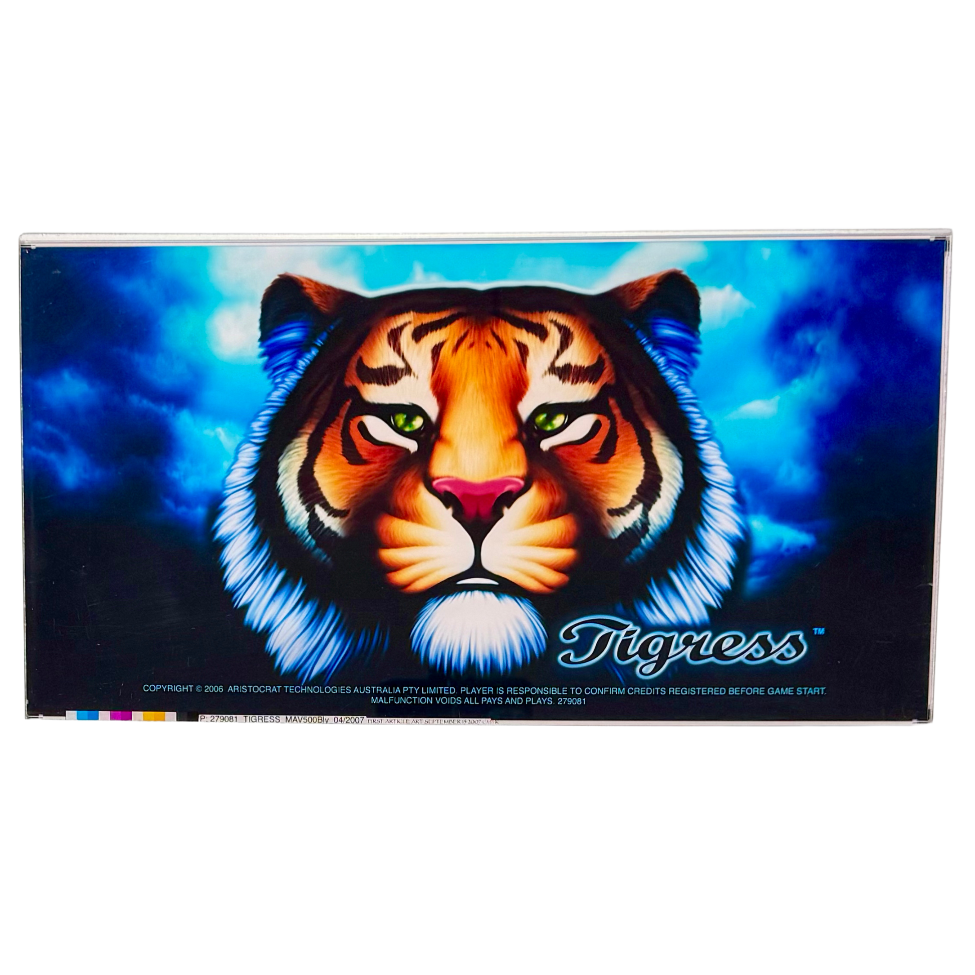 The Tigress Slot Retro Acrylic radiates fierce elegance with its striking tiger portrait set against an electric blue storm-lit sky. With piercing green eyes and vivid fur detail, this piece channels wild beauty and primal energy—perfect for those who collect bold, untamed icons of vintage casino art.