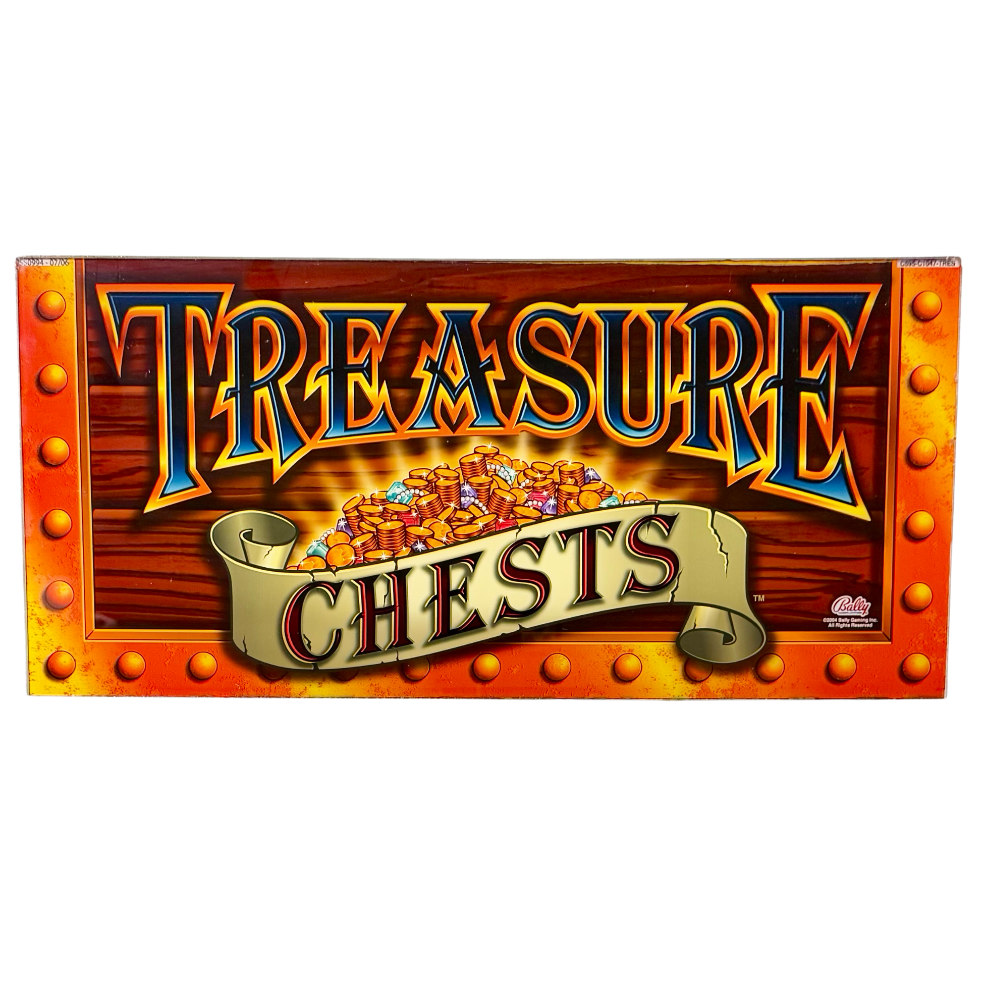 The Treasure Chests Slot Glass features a bold and adventurous design, with a rich wooden backdrop, golden rivets, and an overflowing chest of gold coins and jewels. The vibrant typography and pirate-inspired aesthetic make this piece a standout for collectors, casino enthusiasts, or anyone looking to add a touch of vintage gaming nostalgia to their decor.