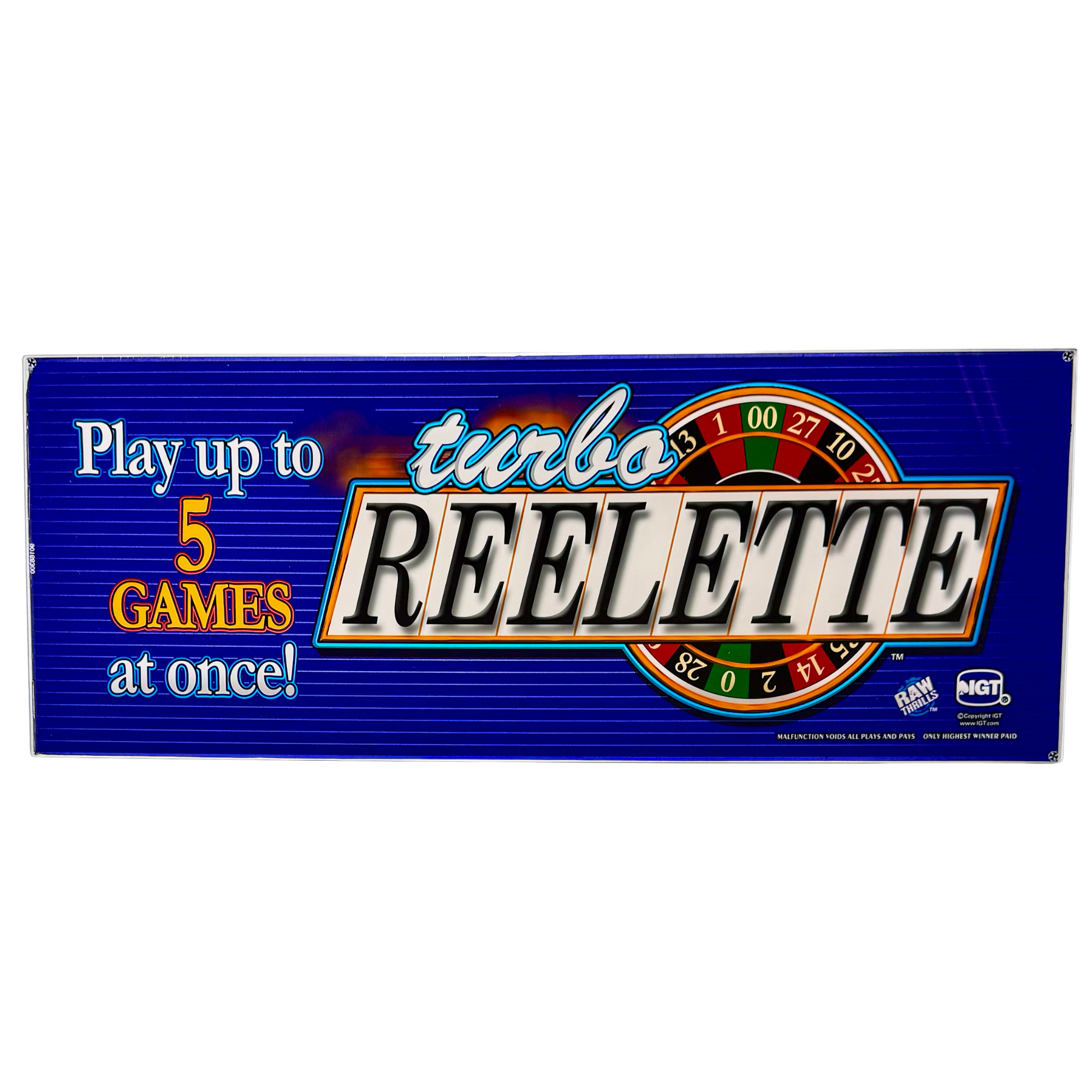 The Turbo Reelette Slot Glass spins roulette style into overdrive with a bold twist—offering players the thrill of 5 games at once! With a rich royal blue background, classic number wheel, and a slot-inspired reel design, this glass fuses the best of casino classics. A rare gem for collectors who love fast-paced action and vintage flair.