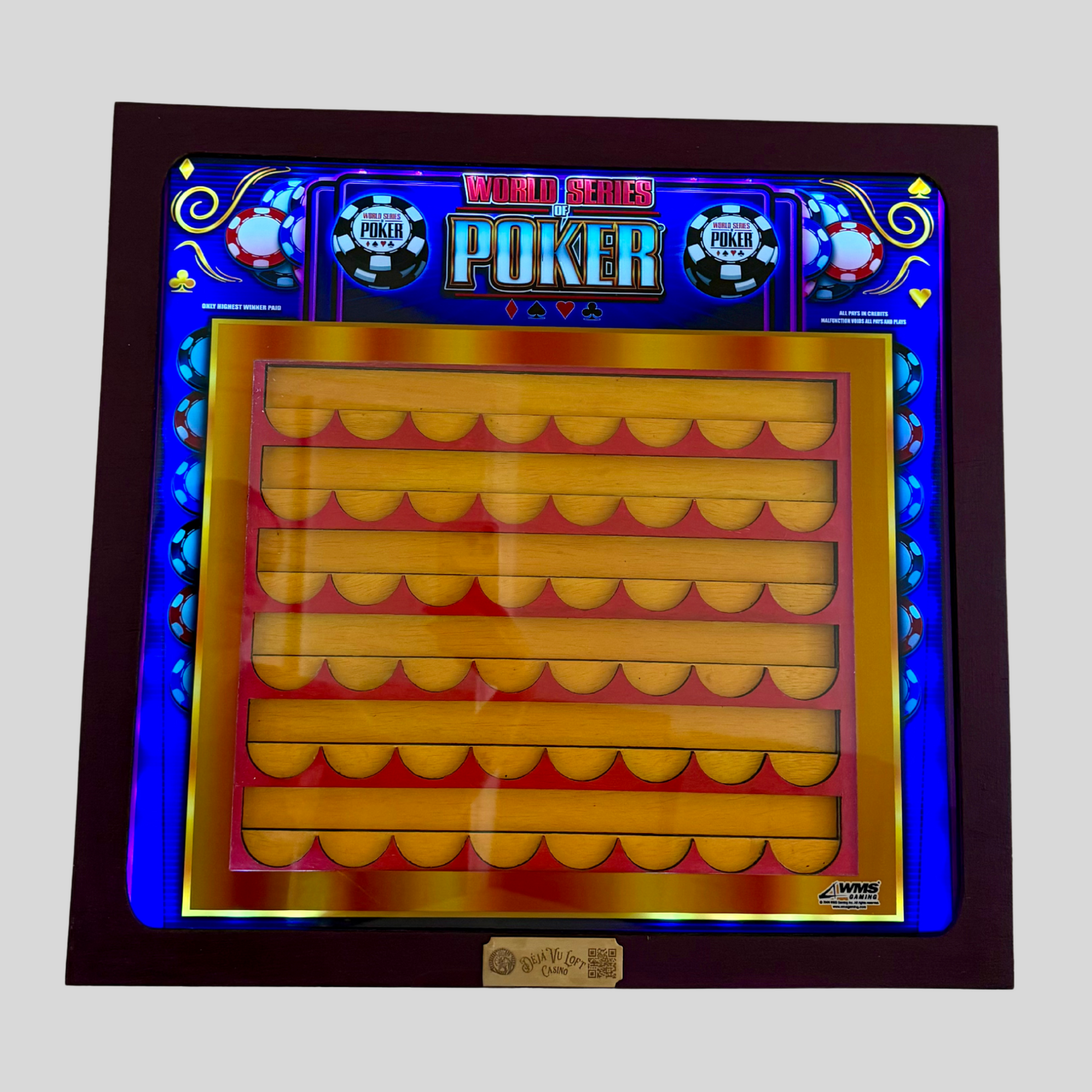 Elevate your decor with the "World Series Of Poker" slot glass, an iconic piece celebrating the excitement and prestige of one of the world's most renowned poker tournaments. This stunning slot glass features vibrant colors, poker chips, and card suits, capturing the essence of high-stakes poker. The central open frame allows for personalization, making it perfect for displaying your cherished memories from Vegas, such as diplomas, photos, or other memorabilia. Ideal for game rooms, entertainment spaces, or as a unique gift for poker enthusiasts, this authentic slot machine glass adds a touch of Vegas glamour and personal flair to any decor. Let the "World Series Of Poker" slot glass commemorate your adventures and achievements, turning every glance into a trip down memory lane!