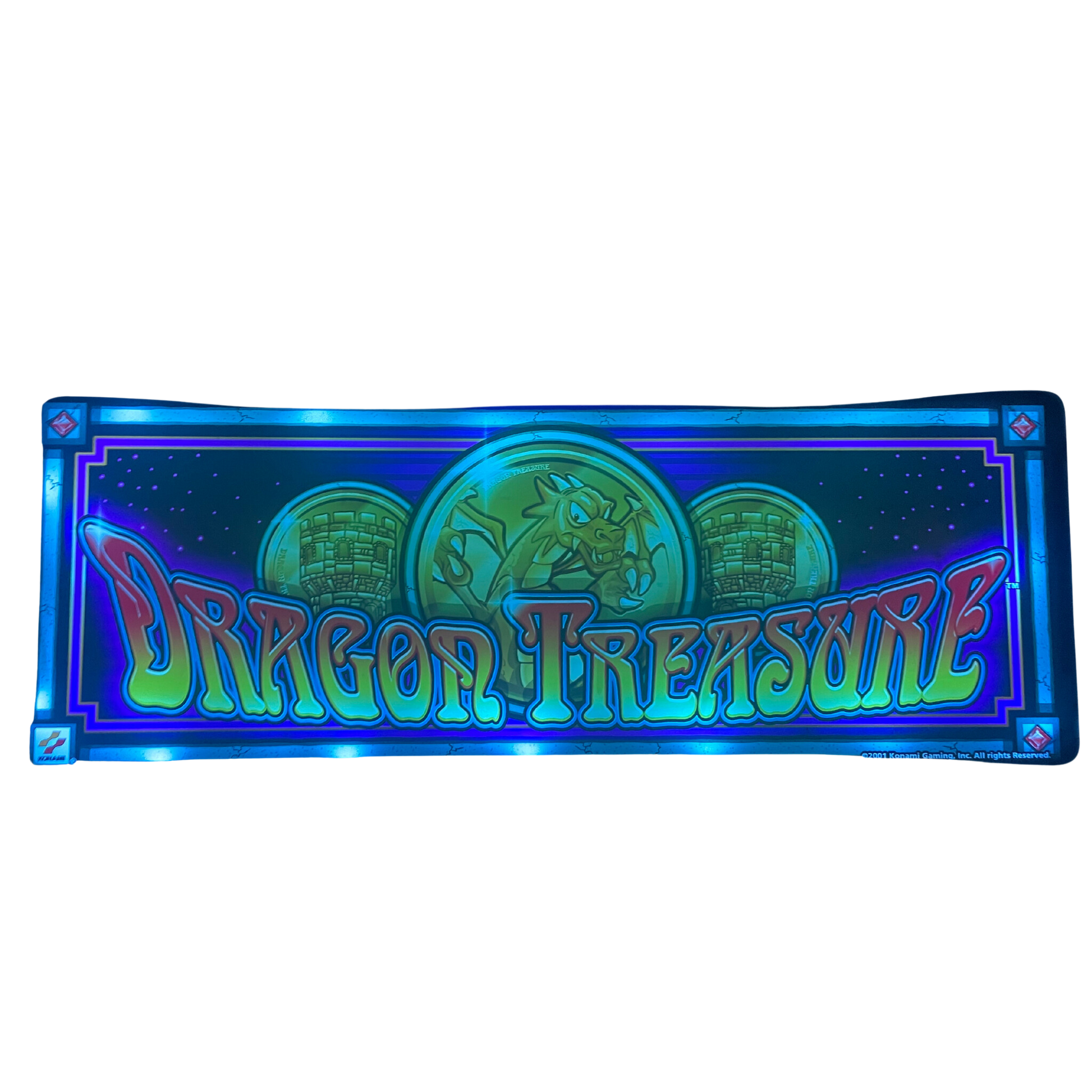 Embark on an epic quest for riches with the "Dragon Treasure" slot glass! This captivating piece features a fierce dragon guarding a hoard of golden coins and ancient treasures, set against a mystical night sky. The vibrant colors and detailed artwork bring the legendary creature to life, promising excitement and adventure. Perfect for game rooms, entertainment spaces, or any area that embraces fantasy and mythology, this authentic slot machine glass is a fantastic addition for collectors and vintage decor enthusiasts. Let "Dragon Treasure" transport you to a world of mythical riches and heroic tales, adding a touch of magic to your decor!