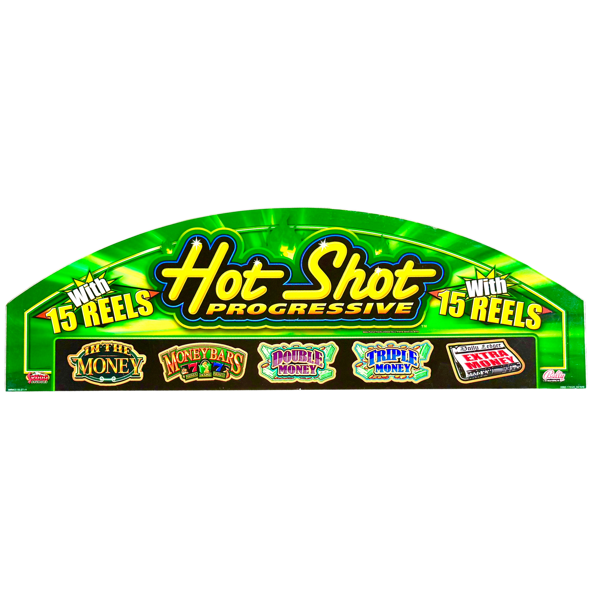Introducing the Hot Shot Progressive Slot Glass, a dynamic and eye-catching piece for slot machine enthusiasts and collectors alike. Featuring a vibrant green design with bold lettering and a lineup of classic game icons—including In the Money, Money Bars, Double Money, Triple Money, and Blazing Sevens—this slot glass captures the excitement of progressive gameplay. The "With 15 Reels" callout emphasizes the thrill and challenge of this beloved game. Whether you're a collector of progressive slot memorabilia or looking for a unique piece of decor with a casino flair, the Hot Shot Progressive Slot Glass is a must-have addition to your collection.