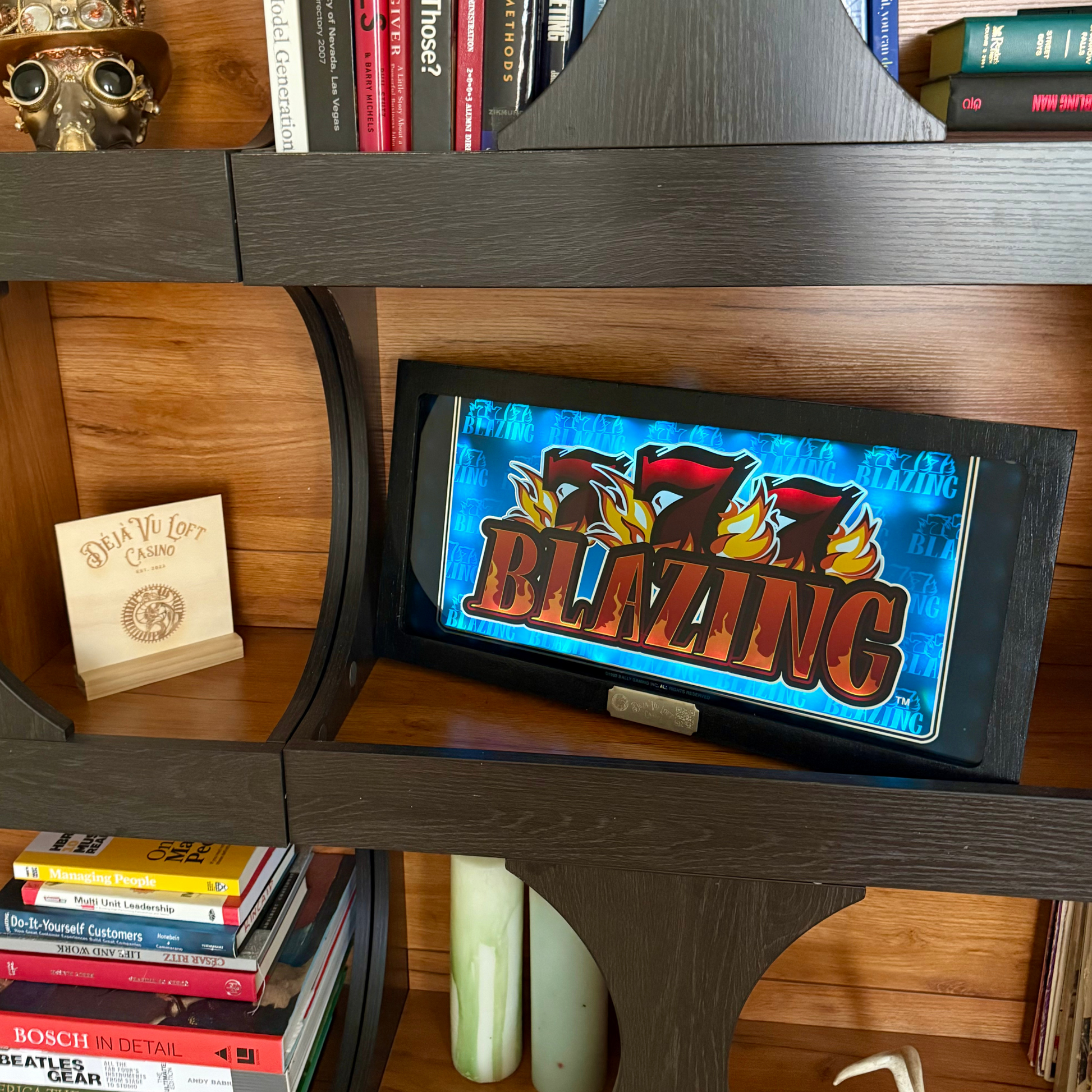 Blazing 7s was always one of my grandpa’s favorite slots to play and him and I shared a lot of fond memories going to the casino and playing on those machines. The slot glass looks great in the light up frame and seeing it takes me back to those fond memories. Love the product and would recommend to anyone.