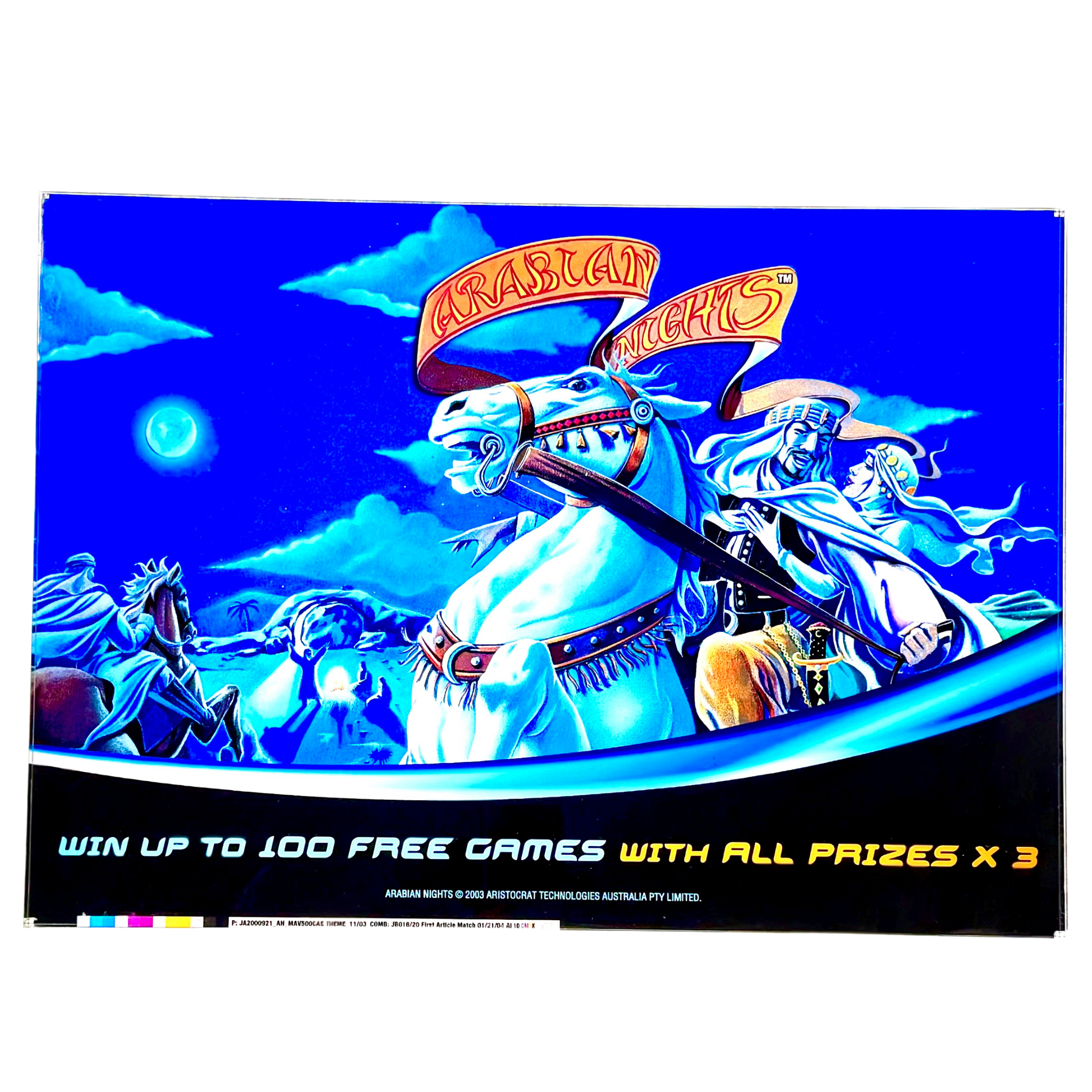 Transport yourself to a world of adventure and mystique with the Arabian Nights Slot Retro Acrylic! Featuring a bold, high-energy design of gallant riders and desert scenery under a moonlit sky, this slot glass is a perfect addition for collectors, casino enthusiasts, and lovers of vintage gaming decor.