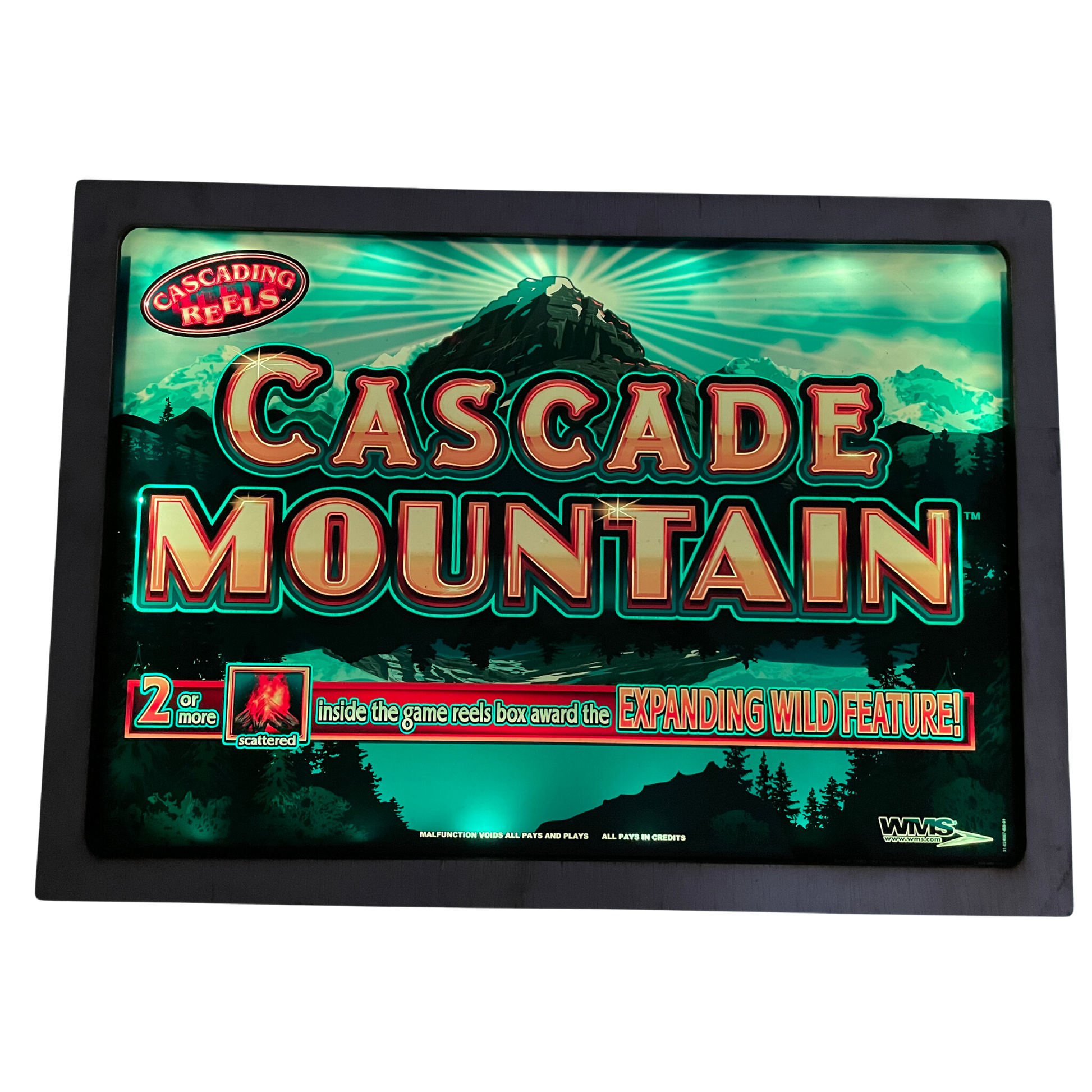Embark on an epic adventure with the "Cascade Mountain" slot glass! This stunning piece features the majestic peaks of a mountain range bathed in the glow of a setting sun, capturing the awe-inspiring beauty of nature. The bold red and green lettering stands out against the dramatic backdrop, emphasizing the thrill of the game. With cascading reels and the exciting Expanding Wild feature, this design promises endless excitement and the potential for big wins. Perfect for game rooms, cabins, or any space that celebrates the great outdoors, this authentic slot machine glass is a fantastic addition for collectors and vintage decor enthusiasts. Let "Cascade Mountain" bring the grandeur of nature and the excitement of the casino to your decor, creating a breathtaking focal point in any room!