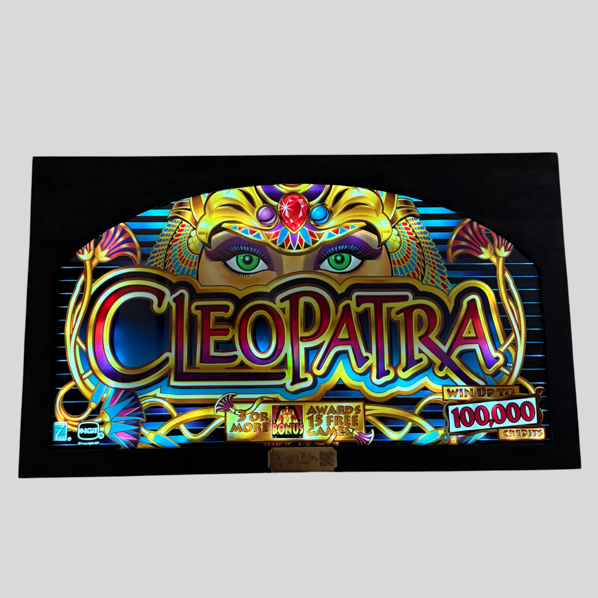 The Cleopatra Slot Glass is a stunning and regal piece that captures the essence of ancient Egyptian opulence. Featuring the mesmerizing green eyes of Cleopatra herself, surrounded by ornate gold and vibrant hieroglyphic designs, this slot glass evokes the mystique and grandeur of a lost era. The bold typography and intricate detailing make it a captivating display piece, perfect for collectors, casino décor enthusiasts, or anyone looking to add a touch of historical luxury to their space.