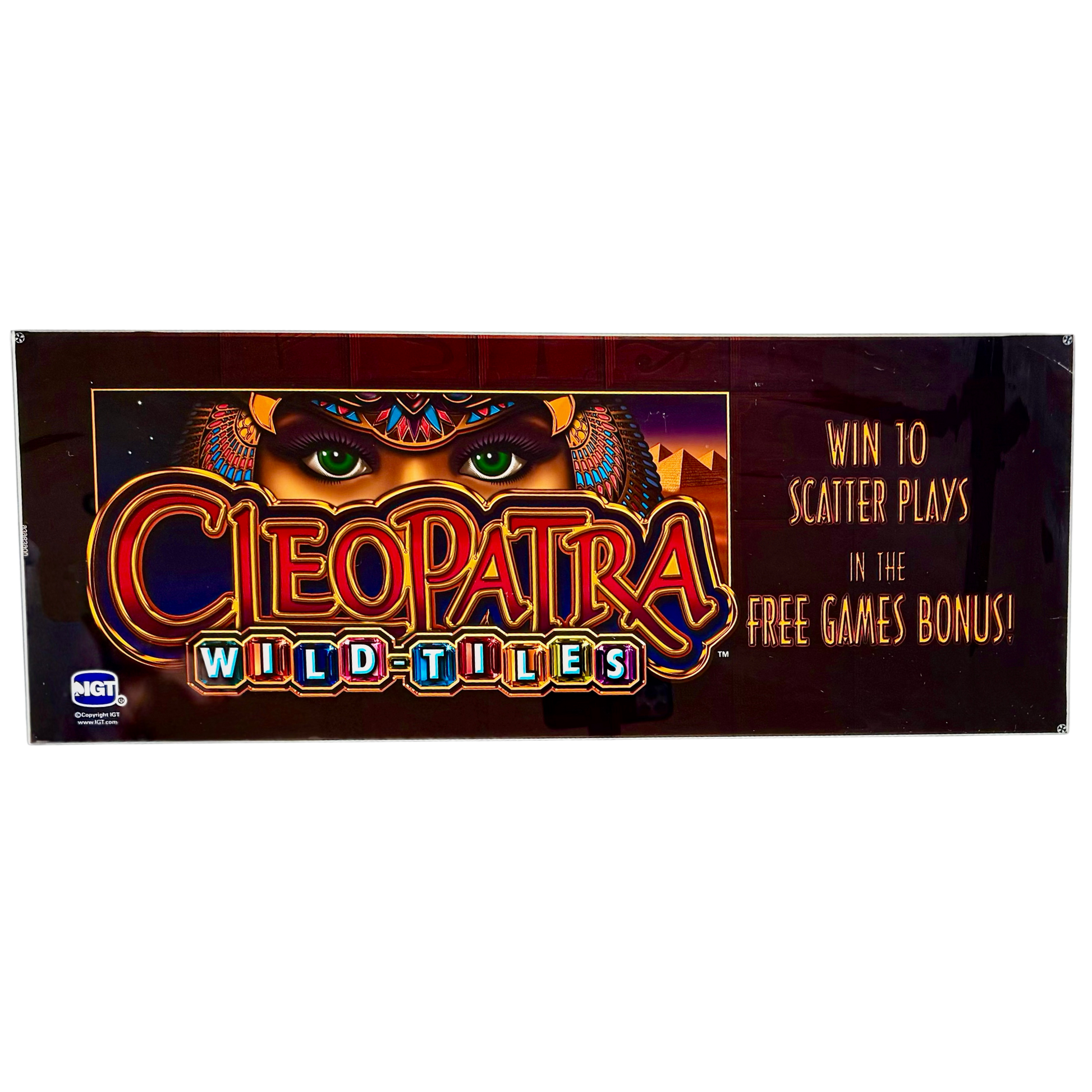 The Cleopatra Wild Tiles Slot Glass features a bold and mysterious design with Cleopatra’s mesmerizing green eyes peeking out from under an ornate Egyptian headdress. The deep, rich colors and hieroglyphic-style lettering evoke the splendor of ancient Egypt, while the pyramids and desert backdrop add to the exotic allure. Perfect for fans of history, mythology, and regal themes, this piece adds a touch of royal intrigue and adventure to any collector's wall or game room.