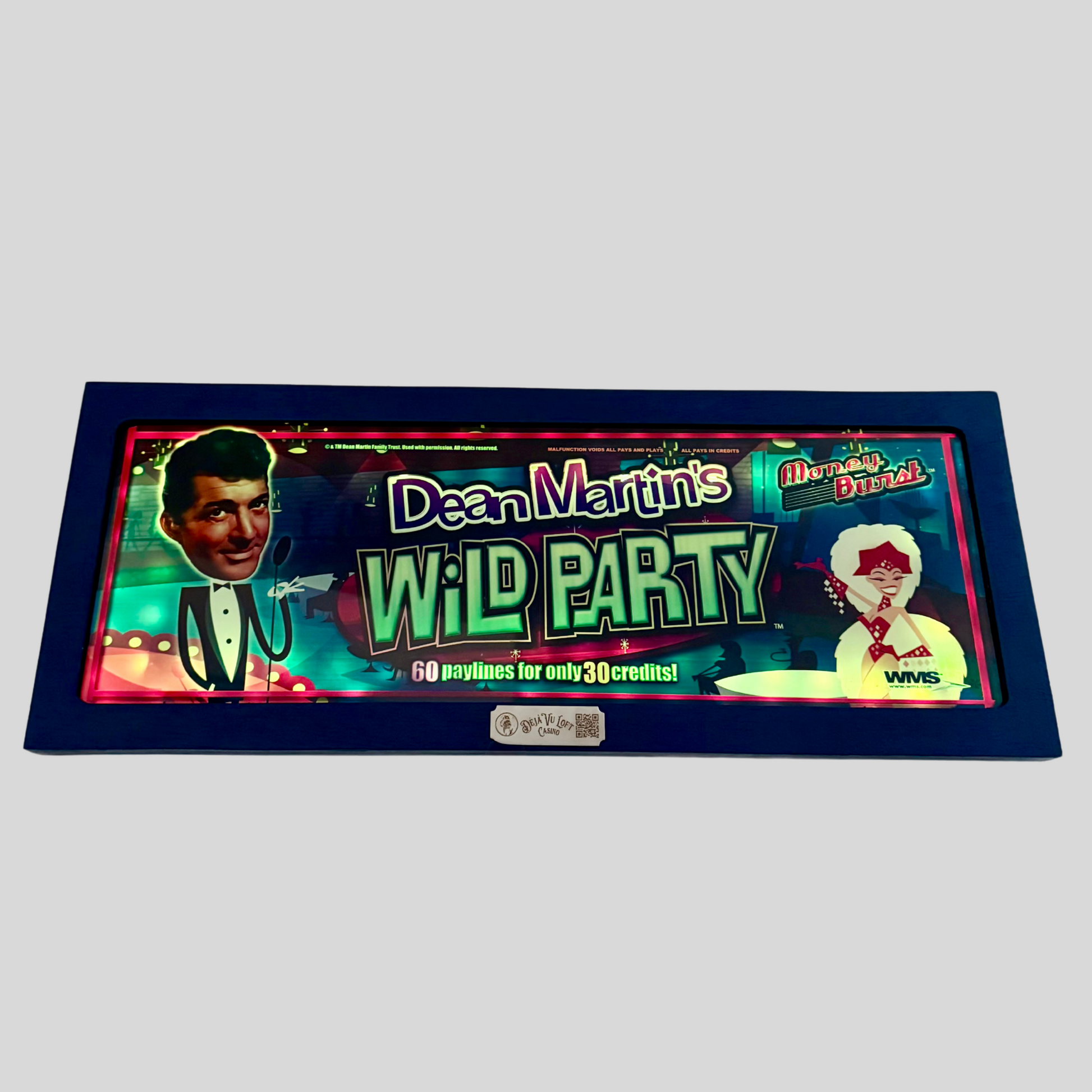 The Dean Martin’s Wild Party Slot Glass is a swinging tribute to Vegas nightlife and Rat Pack charisma. With neon hues, martini glasses, and a masked mystery woman, this piece channels the glamour of a vintage casino soirée. Boasting 60 paylines for only 30 credits, it's a collector’s dream for fans of old-school cool, musical legends, and vibrant casino history.