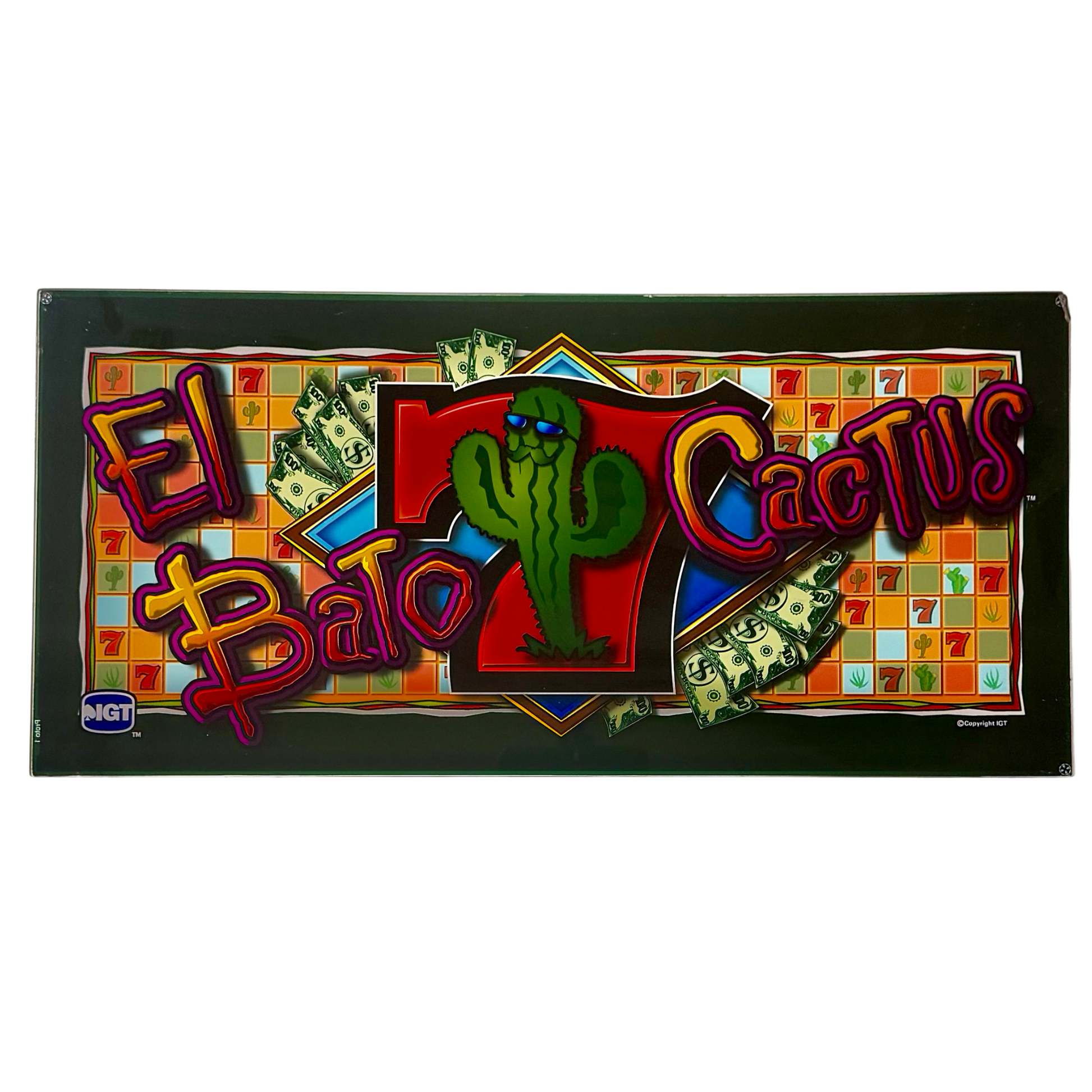 The El Bato Cactus Slot Glass features a bold and playful design with a cool cactus wearing sunglasses, surrounded by dollar bills and classic slot machine symbols. This piece is perfect for collectors and slot glass enthusiasts who love a mix of southwestern charm and vintage casino style.