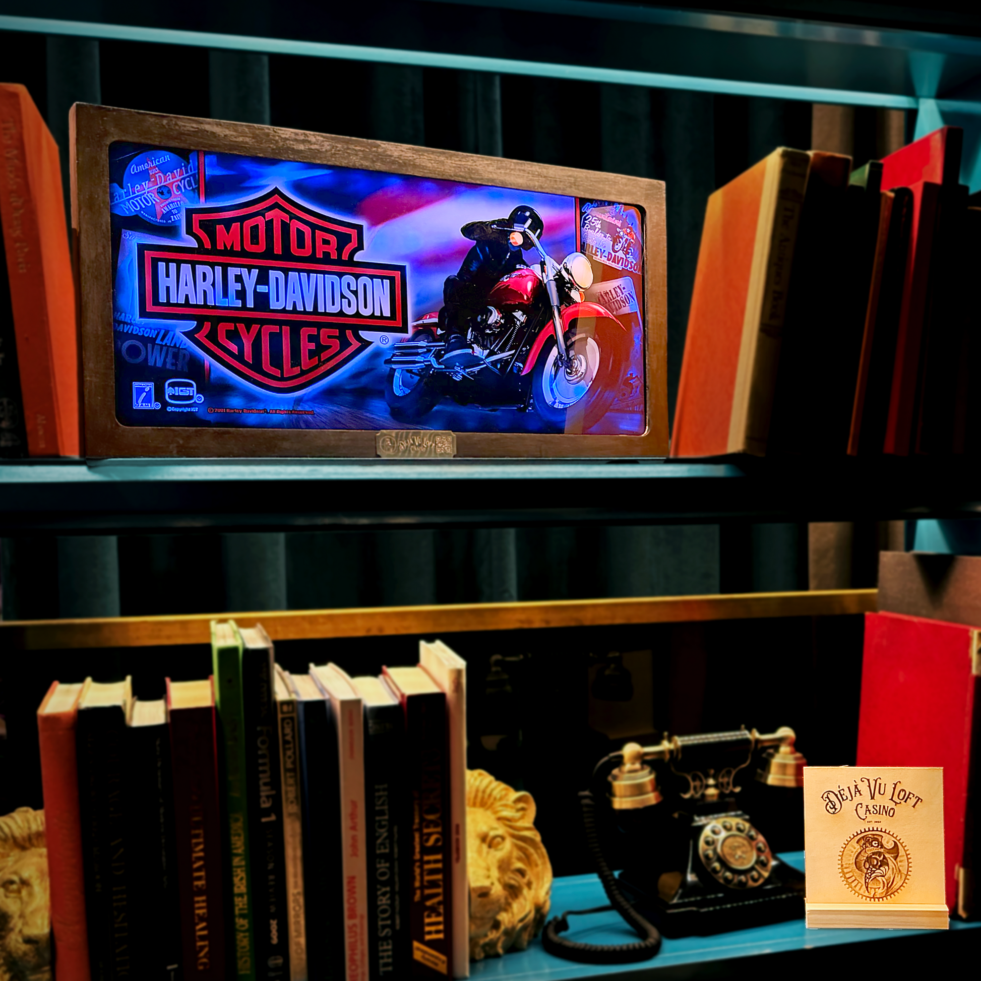 Feel the roar of the open road with the Harley-Davidson Slot Glass! Featuring the iconic Harley-Davidson logo, a powerful red motorcycle in motion, and an American flag backdrop, this slot glass is a must-have for motorcycle enthusiasts and collectors. Perfect for adding a bold and classic touch to any collection or display.