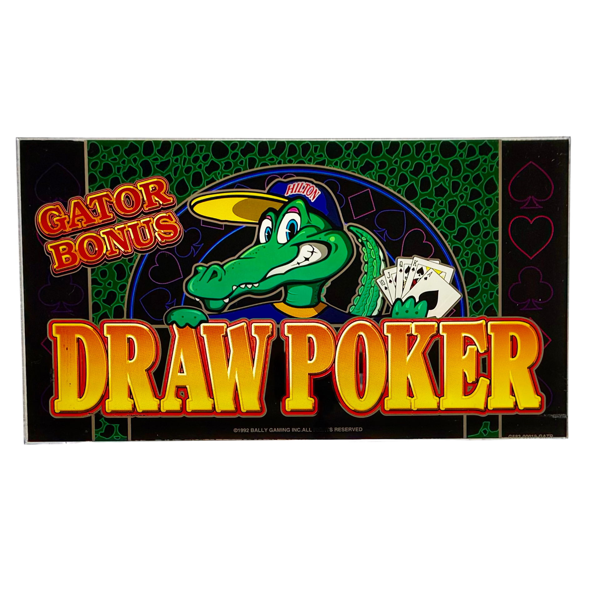 The bold spirit of the Hilton shines through the Gator Bonus Draw Poker Slot Glass. With its playful alligator mascot clutching a winning hand, this vintage piece brings back the thrill of poker nights and casino charm. A vibrant relic from the early ‘90s, it’s a must-have for collectors who love the mix of humor, history, and high stakes.