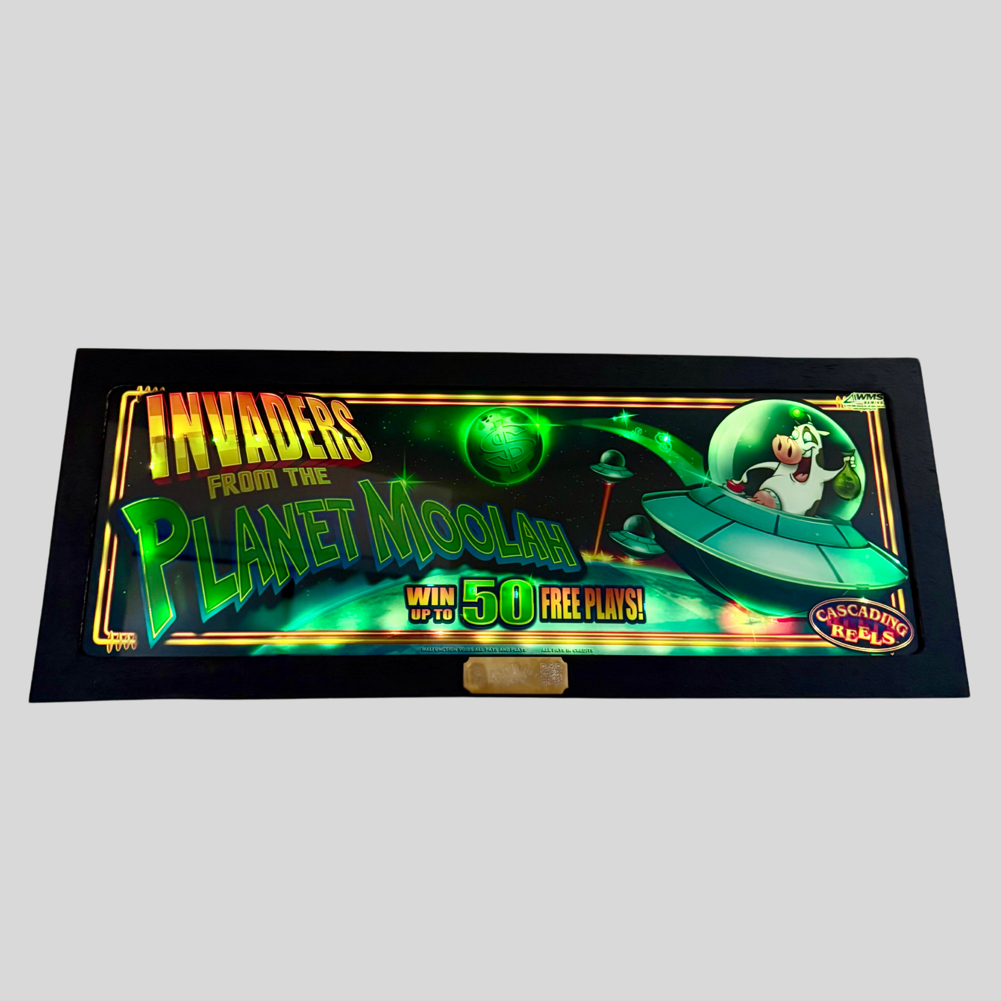Blast off into intergalactic fun with the Invaders From The Planet Moolah Slot Glass. Featuring alien cows, flying saucers, and cascading reels, this iconic piece from WMS captures the quirky charm of one of the most beloved novelty slots ever created.