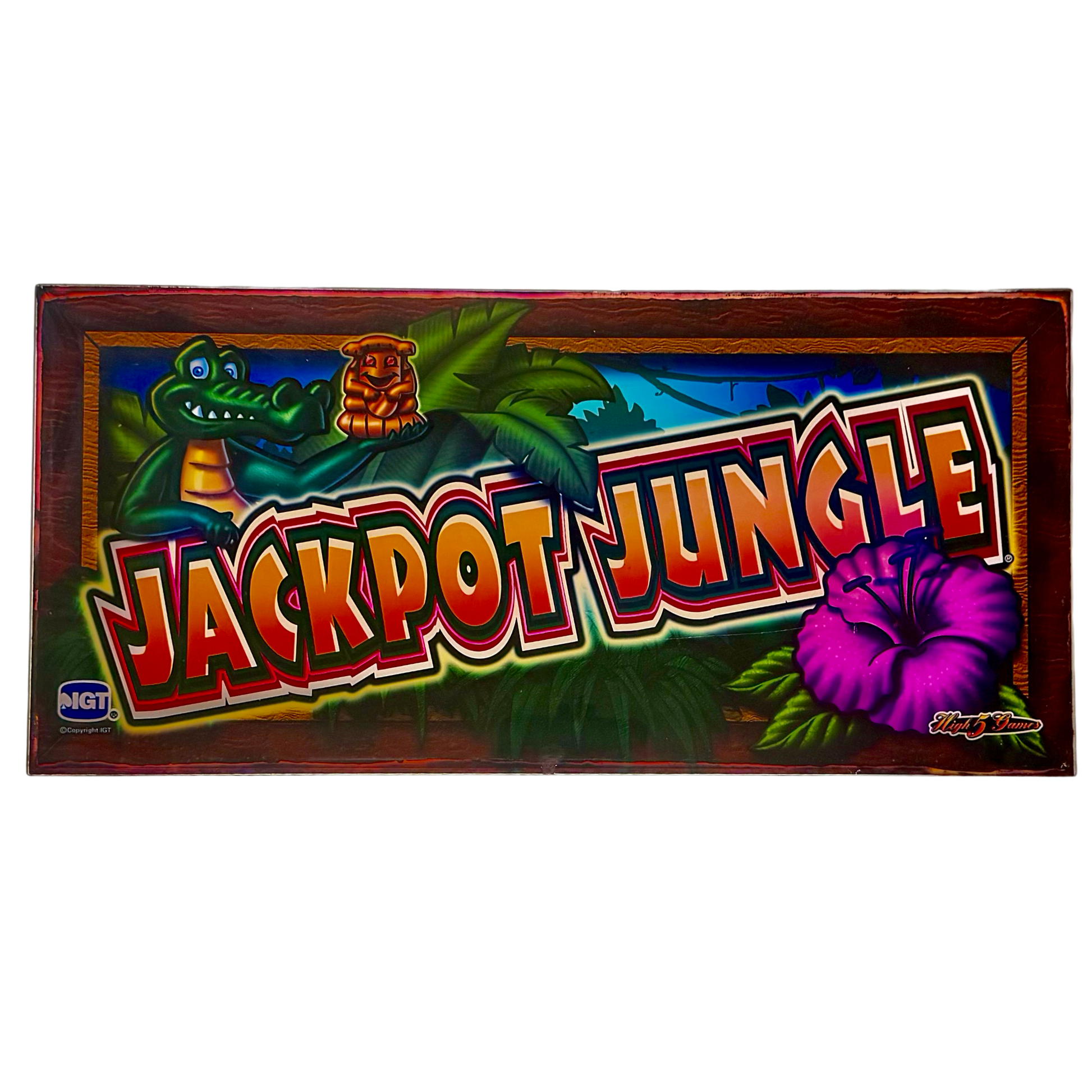 The Jackpot Jungle Slot Glass bursts with vibrant tropical energy, featuring a lush jungle backdrop, a playful alligator, and exotic flora. The bold red and yellow lettering adds a sense of adventure, while tiki elements give it an island-inspired feel. This eye-catching piece is perfect for collectors who appreciate casino nostalgia and the thrill of the wild.