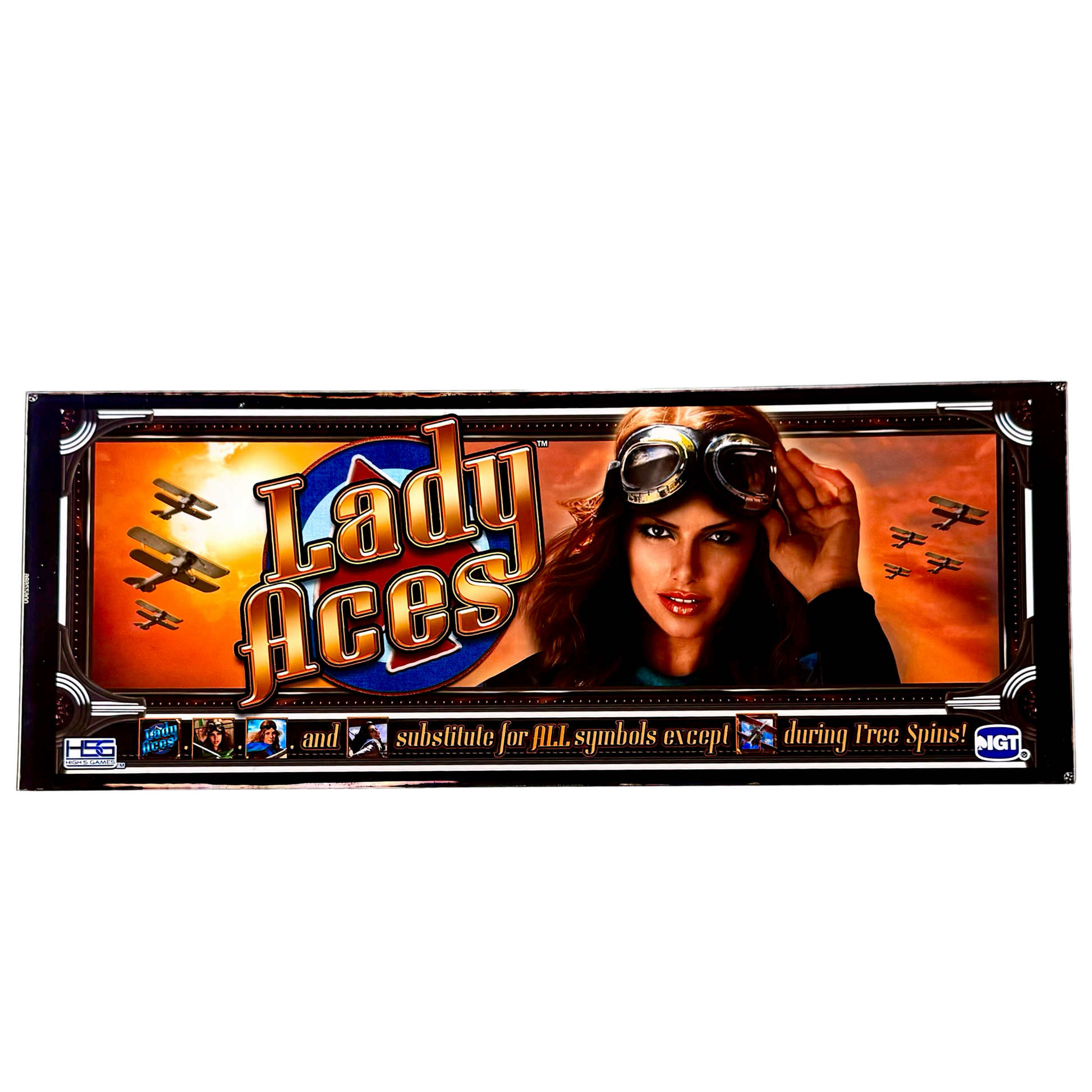 The Lady Aces Slot Glass is a bold and adventurous piece that captures the spirit of aviation and high-stakes excitement. Featuring a striking female aviator with vintage goggles and a confident gaze, this design evokes the golden age of flight and fearless pilots soaring through the skies. The warm hues of orange and gold create an intense and dramatic backdrop, while classic aircraft add to the sense of action and adventure. Perfect for collectors, aviation enthusiasts, and casino décor lovers, this slot glass brings a dynamic and empowering energy to any space.