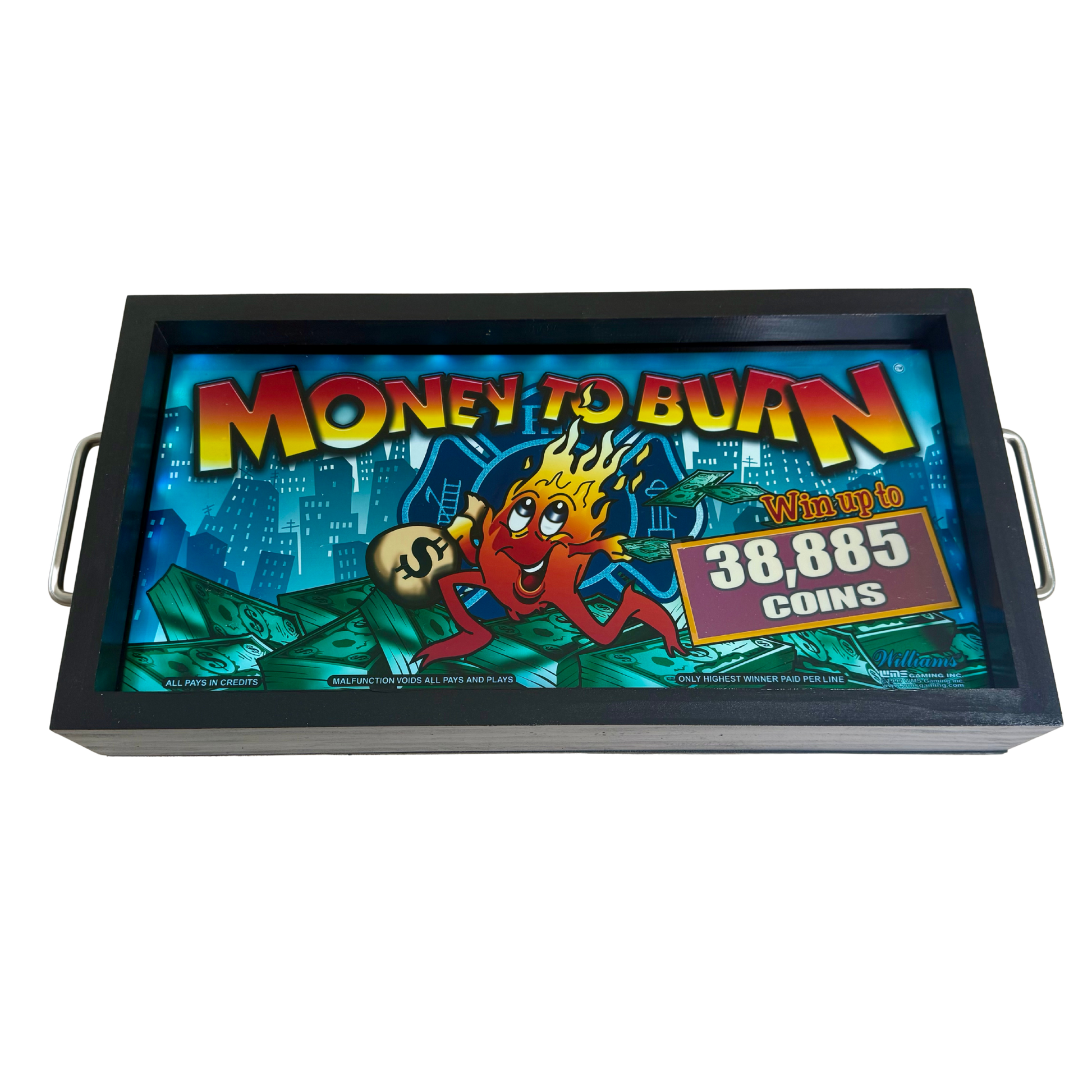 Introducing the Money to Burn Slot Glass, a fiery and exciting piece perfect for enthusiasts of classic casino memorabilia. This slot glass features a bold and colorful design, with a mischievous flame character surrounded by stacks of cash and a bustling cityscape, capturing the thrill of hitting it big. With its dynamic typography and vibrant imagery, the Money to Burn Slot Glass is ideal for collectors, nostalgic buyers, and those looking to add a fun, retro touch to their décor.