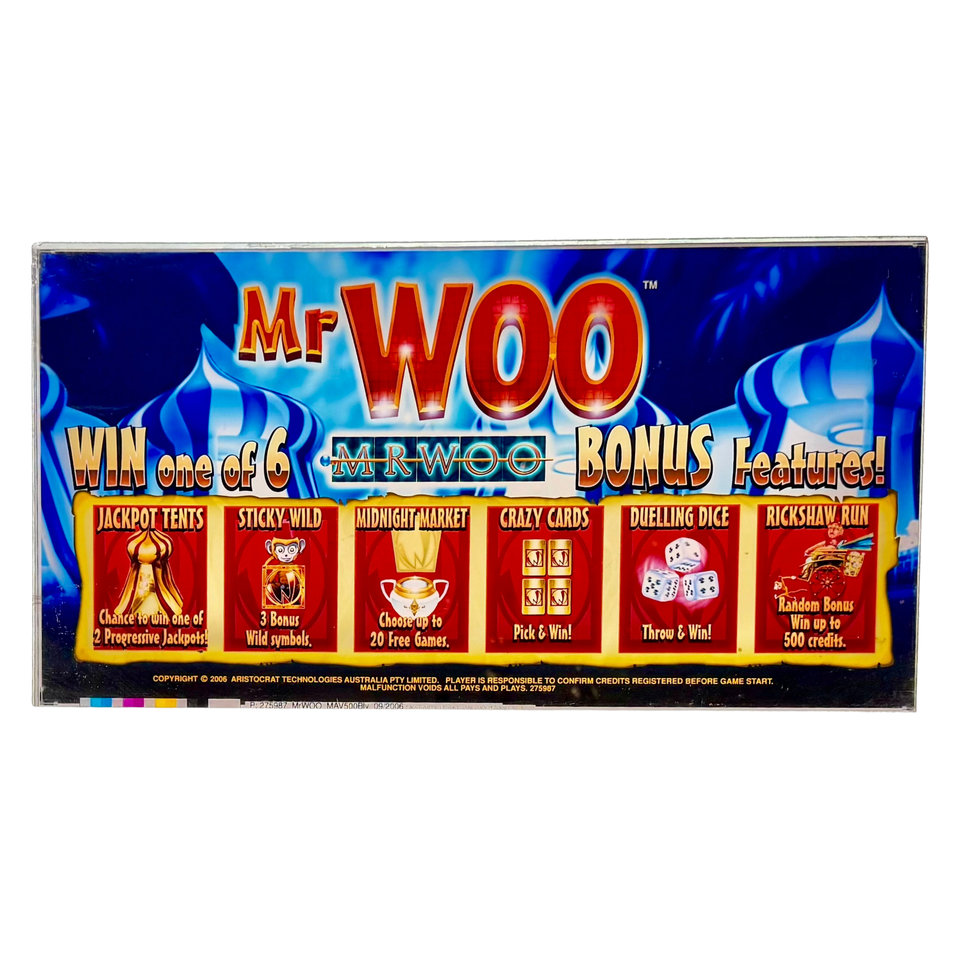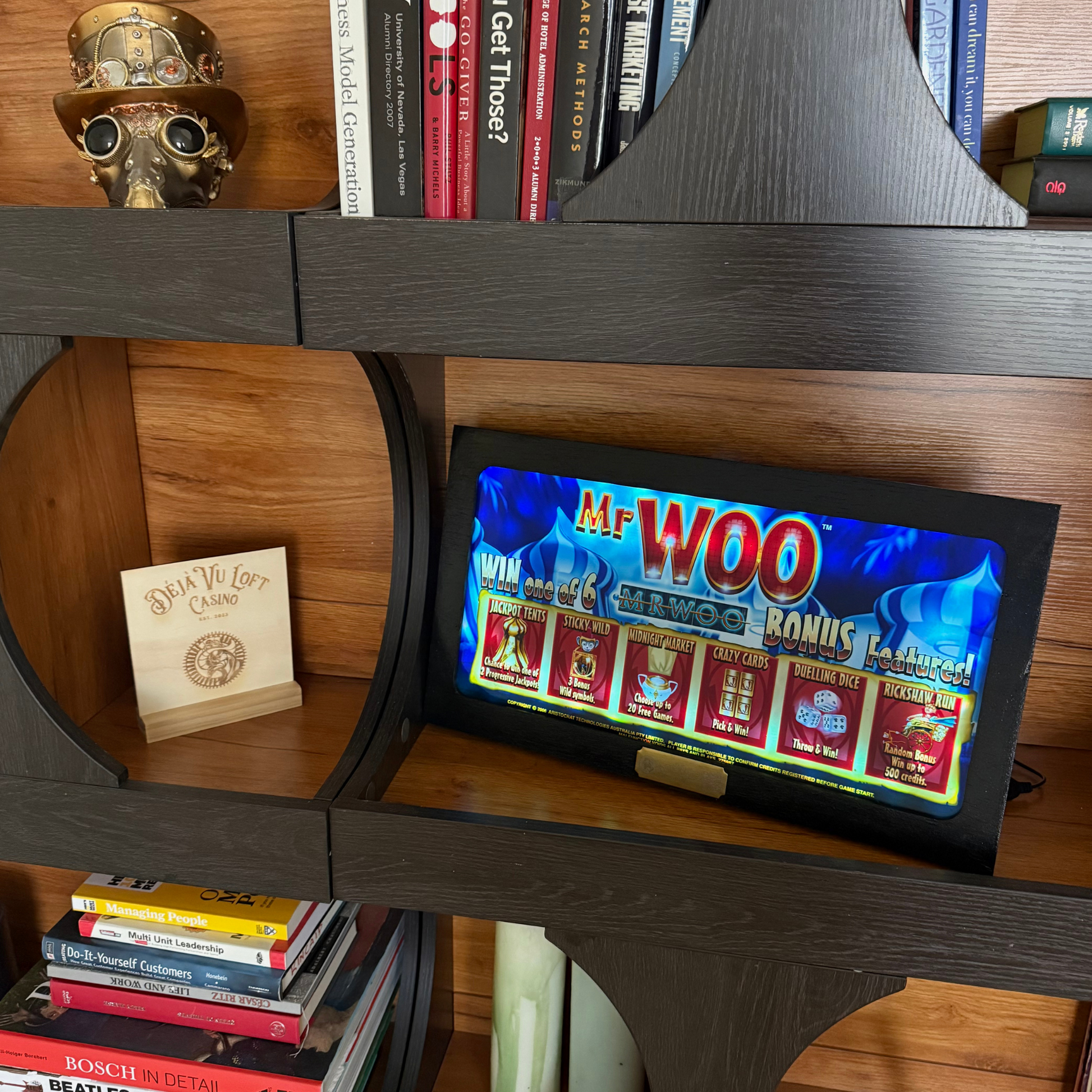 Bold, playful, and full of surprises—Mr. Woo Slot Retro Acrylic captures the excitement of six thrilling bonus rounds with dazzling colors and fast-paced charm. A wild ride from start to finish, just like the man himself.