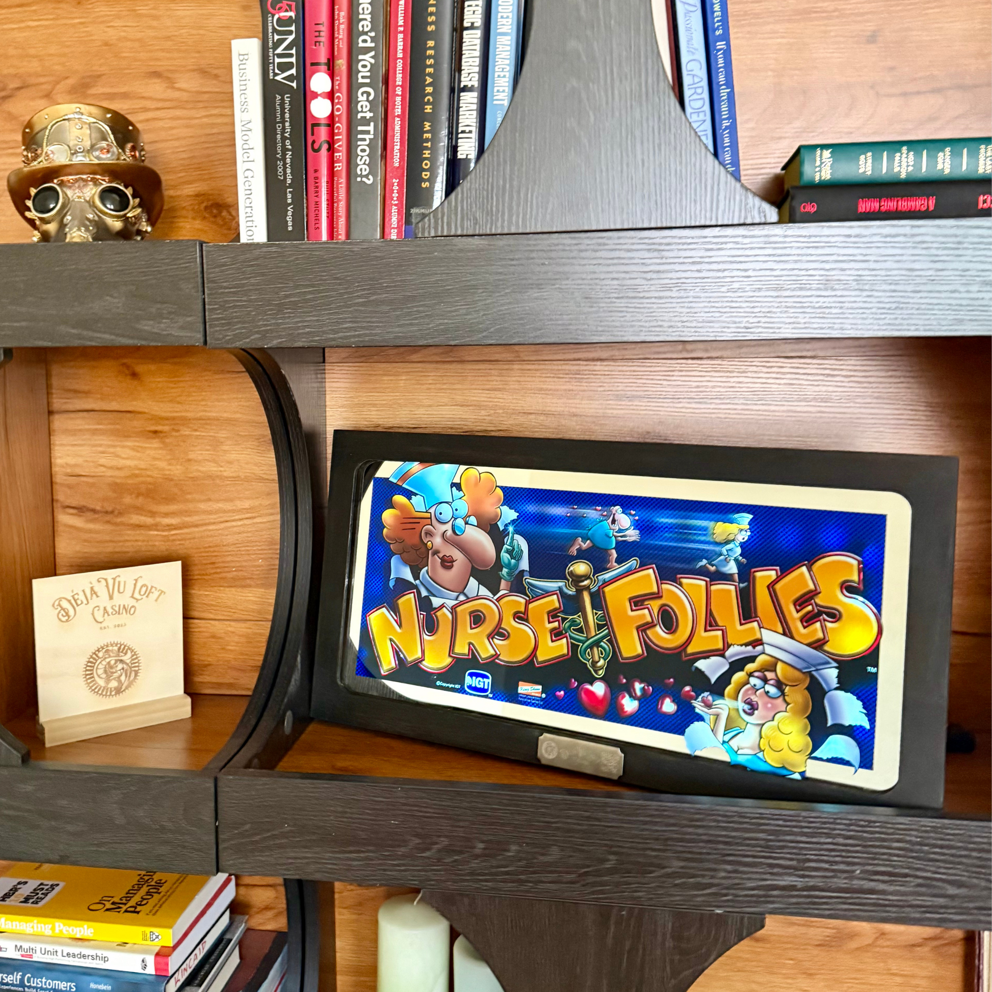 The Nurse Follies Slot Glass showcases a fun and whimsical hospital-themed design with cartoonish nurses and comedic medical chaos. Its vibrant colors and playful artwork make it a fantastic piece for collectors or anyone looking to add a touch of humor to their casino decor.
