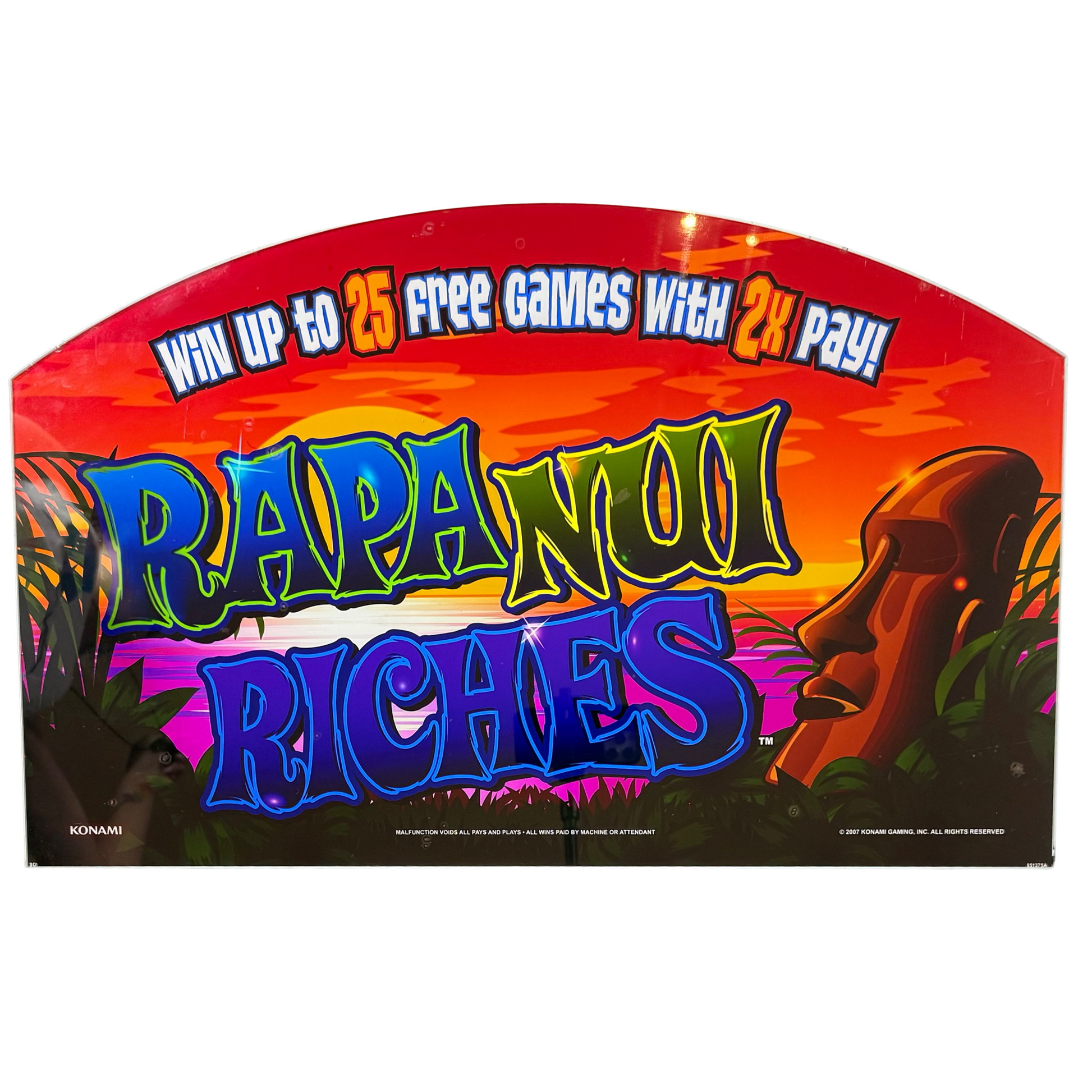 Vibrant, mysterious, and steeped in island legend — the Rapa Nui Riches Slot Glass brings Easter Island vibes to life with its sunset palette and bold Moai silhouette. A colorful standout for collectors who crave a little wanderlust and mythology in their lineup.