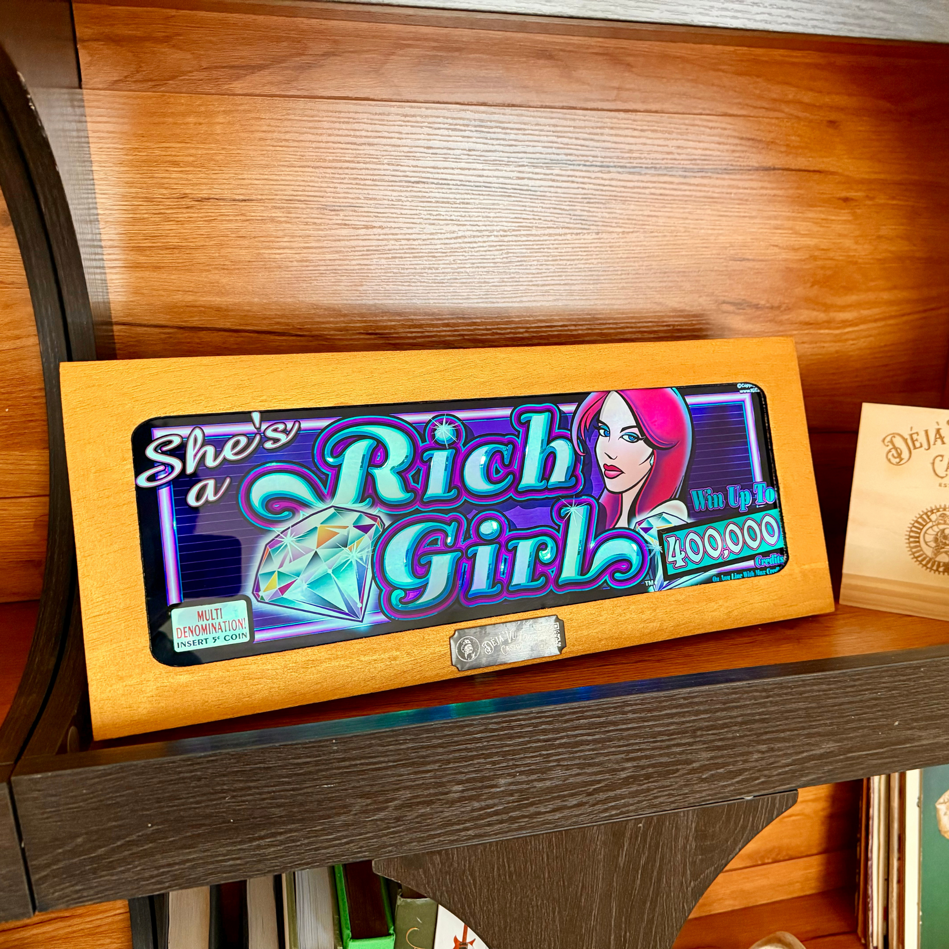 Indulge in the elegance of the Rich Girl Slot Glass, a dazzling addition to any slot glass collection! Featuring a glamorous design with a striking red-haired character, bold lettering, and a sparkling diamond, this piece is a must-have for casino enthusiasts and collectors. Perfect for display, décor, or adding a touch of luxury to your collection.