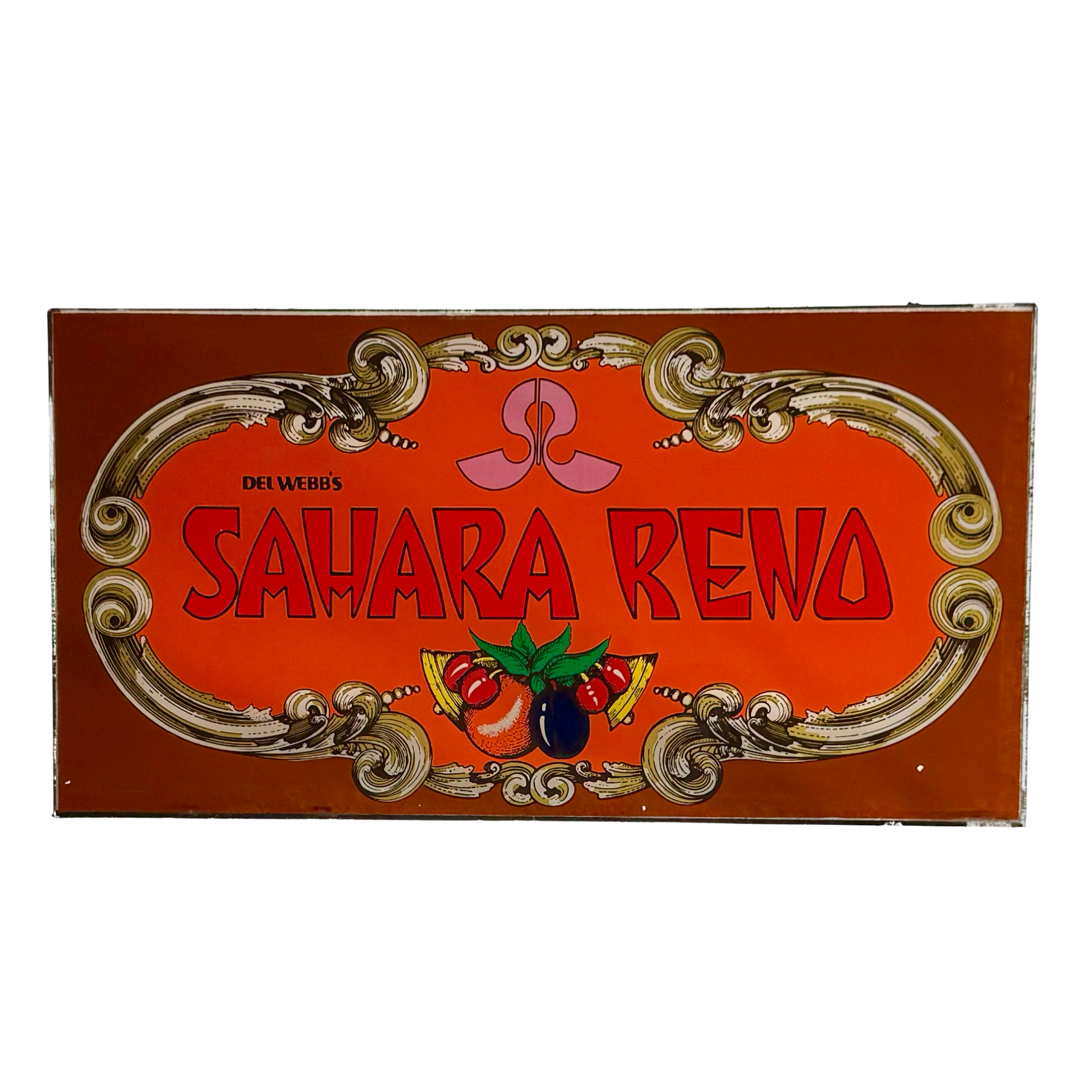 A flourish of elegance and vintage charm, the Sahara Reno Slot Glass carries the bold red glow of a Nevada classic. Trimmed with ornate gold swirls and framed by fruit symbols, it echoes back to Del Webb’s Sahara era—when Reno’s gaming halls dazzled with style and allure. A true slice of casino history preserved in glass.