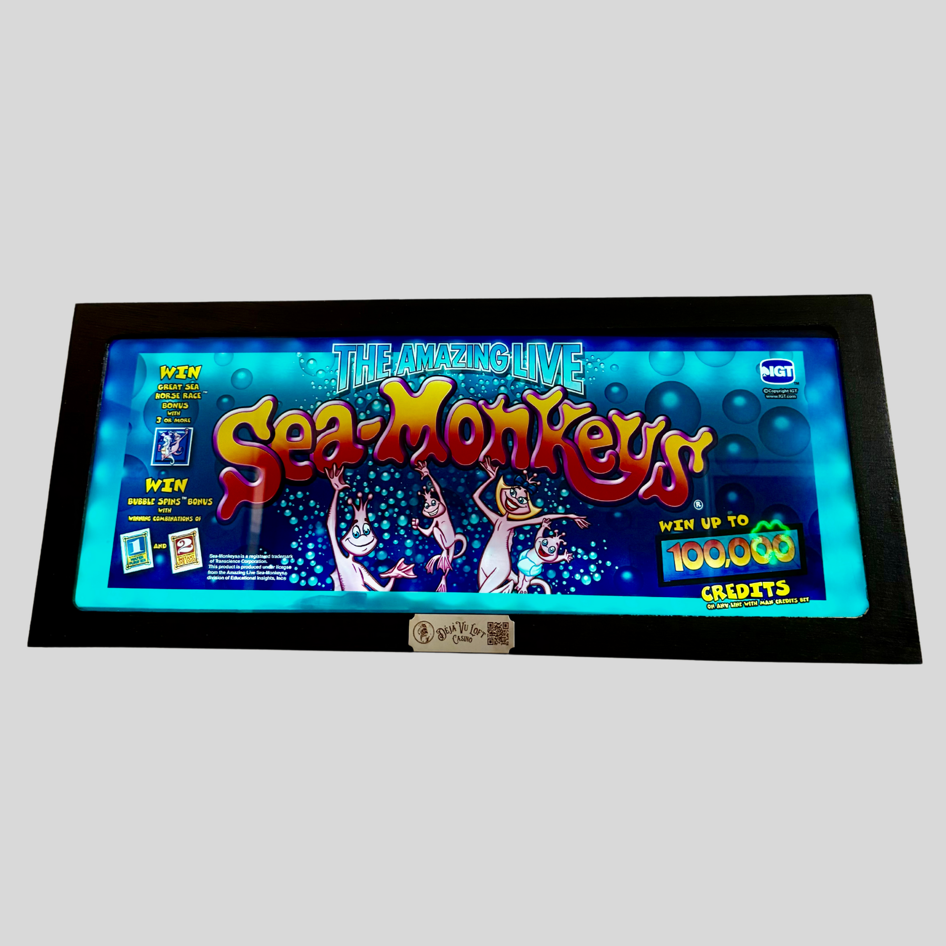 The Sea-Monkeys Slot Glass captures the whimsical and nostalgic charm of the classic Sea-Monkeys franchise with vibrant underwater imagery and playful animated characters. The bubbly blue background and lively typography make this piece a standout addition to any slot glass collection, game room, or retro-themed décor. A perfect pick for collectors who appreciate unique and fun casino memorabilia, this slot glass brings a splash of underwater adventure to any space.