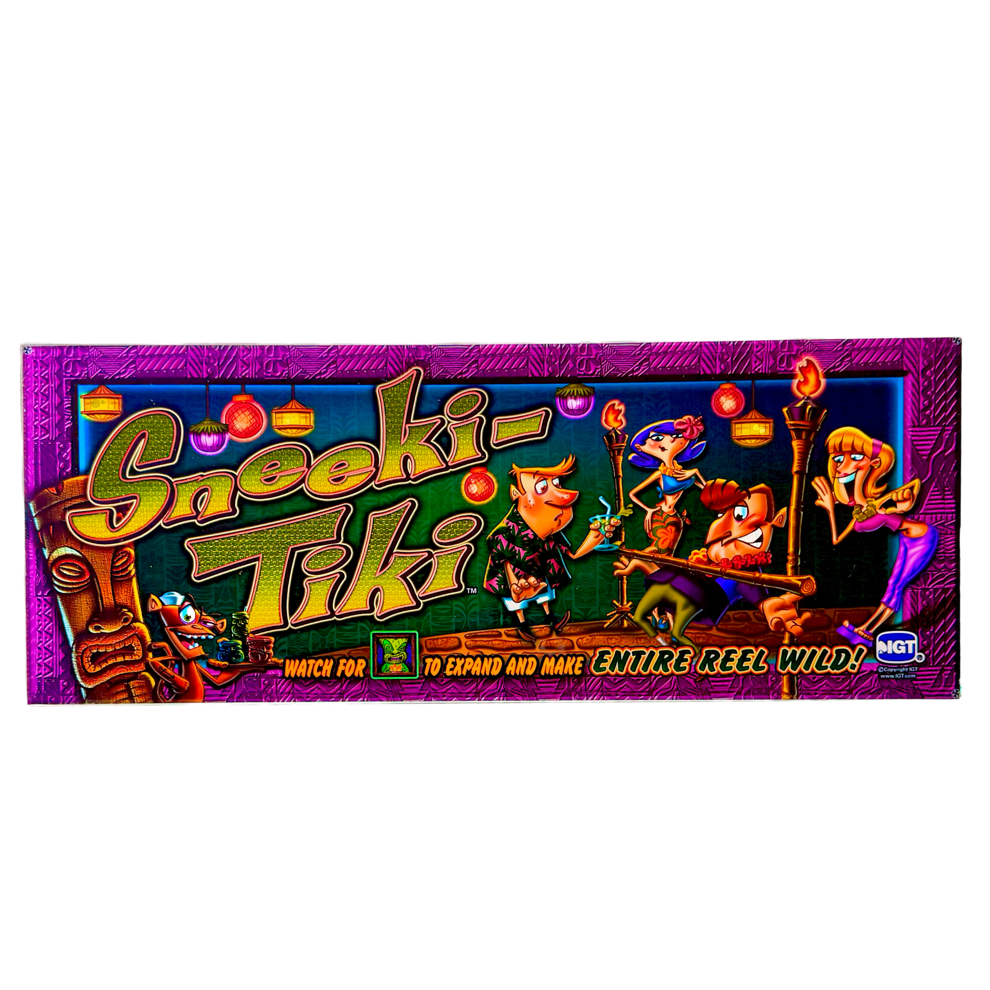 Bring the island vibes home with the Sneeki-Tiki Vintage Slot Machine Glass! This vibrant and playful design captures a lively tiki lounge scene, complete with quirky characters, tropical drinks, and glowing lanterns. The bold, retro lettering and vivid colors create a fun, mid-century modern tiki aesthetic, making it the perfect piece to liven up game rooms, home bars, or vintage collections. Let this nostalgic glass art transport you to a night of island fun and sneaky wins!