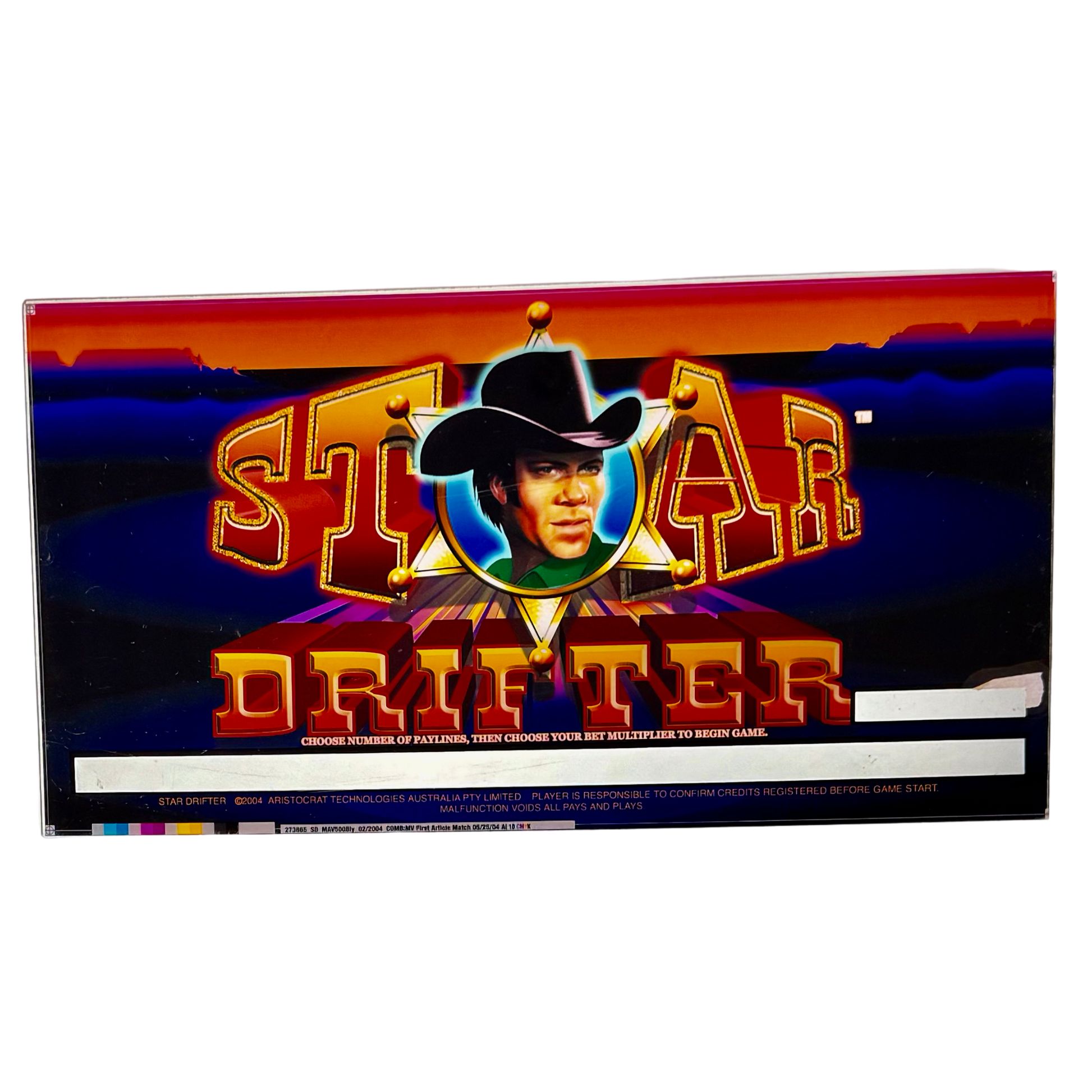 The Star Drifter Slot Retro Acrylic captures the rugged spirit of the Wild West with a cosmic twist. Featuring a lone cowboy set against a glowing sheriff badge and a dramatic sunset gradient, this piece blends Americana grit with vintage slot machine charm. A bold addition for fans of westerns, nostalgia, and collectible casino decor.