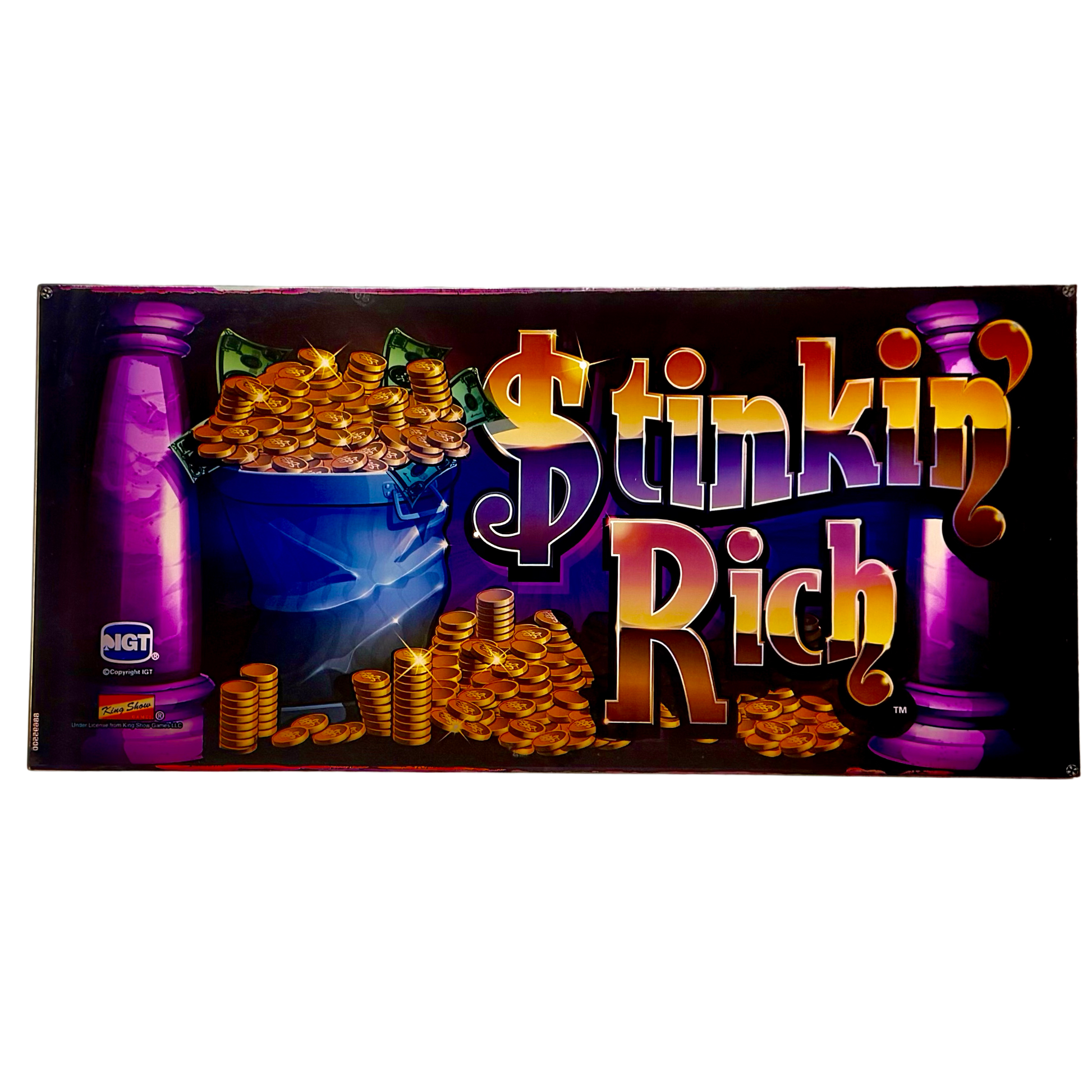 The Stinkin' Rich Slot Glass is a playful and eye-catching piece that brings humor and charm to any collection. Featuring piles of gold coins and cash, this design exudes a whimsical take on wealth and fortune. The bold typography, rich purple hues, and flashy gold elements make it a standout piece for collectors, casino décor enthusiasts, or anyone looking to add a touch of fun and opulence to their space.