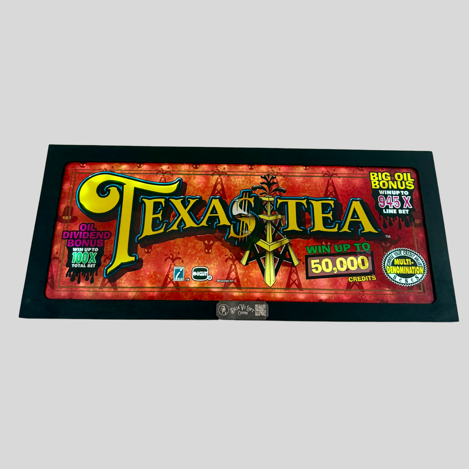 Strike it rich with the bold and iconic Texas Tea Vintage Slot Machine Glass! This vibrant design features a striking red background, classic oil rigs, and the signature dollar sign integrated into the lettering, perfectly capturing the spirit of Texas oil wealth and high-stakes excitement. Its dynamic artwork and bright colors make this piece a standout addition to game rooms, home bars, or vintage decor collections. Bring a little southern charm and big wins into your space with this nostalgic glass art!