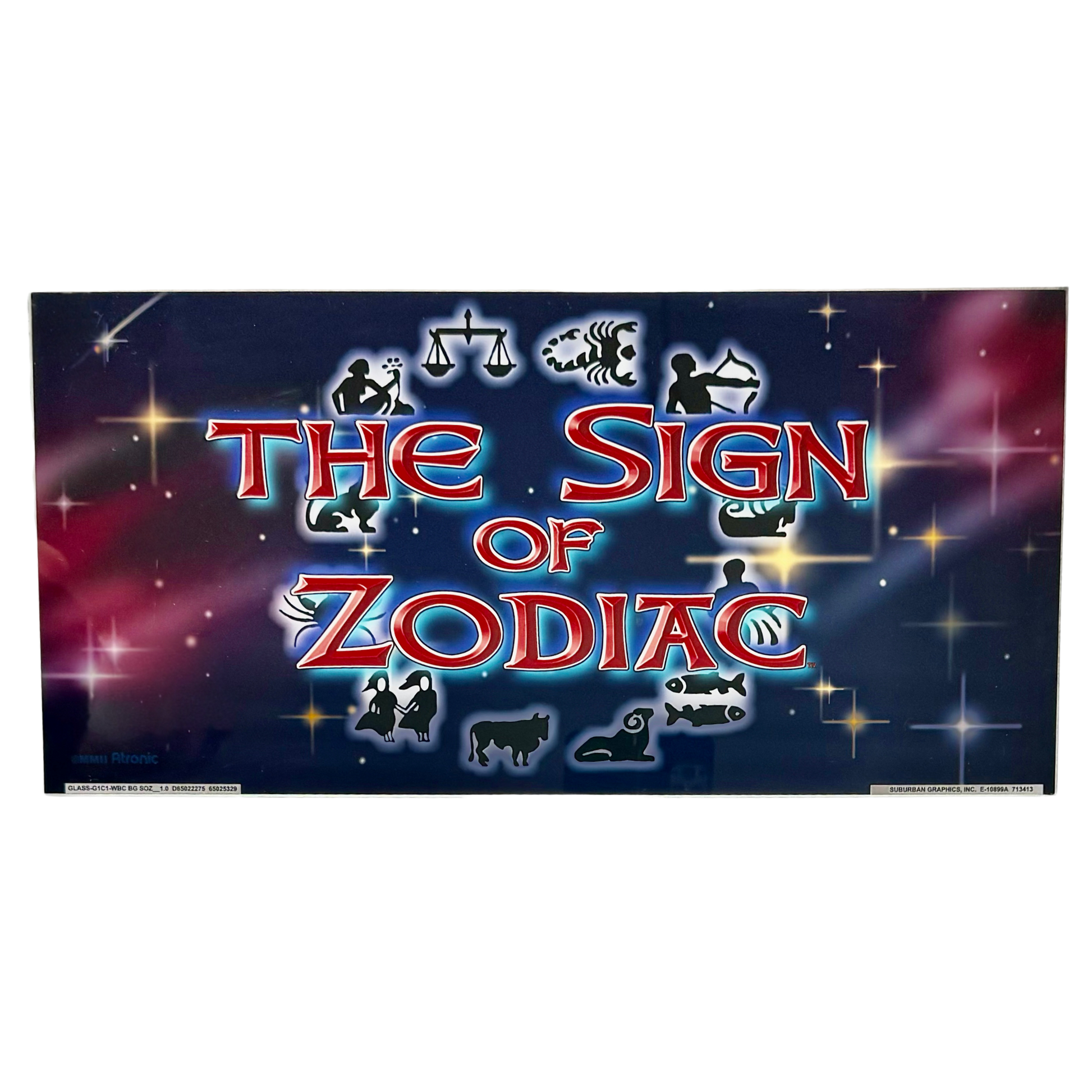 The The Sign of Zodiac Slot Glass is a celestial tribute to the stars, featuring all twelve zodiac signs orbiting bold red-and-white lettering. With a cosmic background of deep purples and radiant stardust, this piece captures the mystique of astrology and chance. A perfect display for horoscope fans and vintage slot collectors alike.