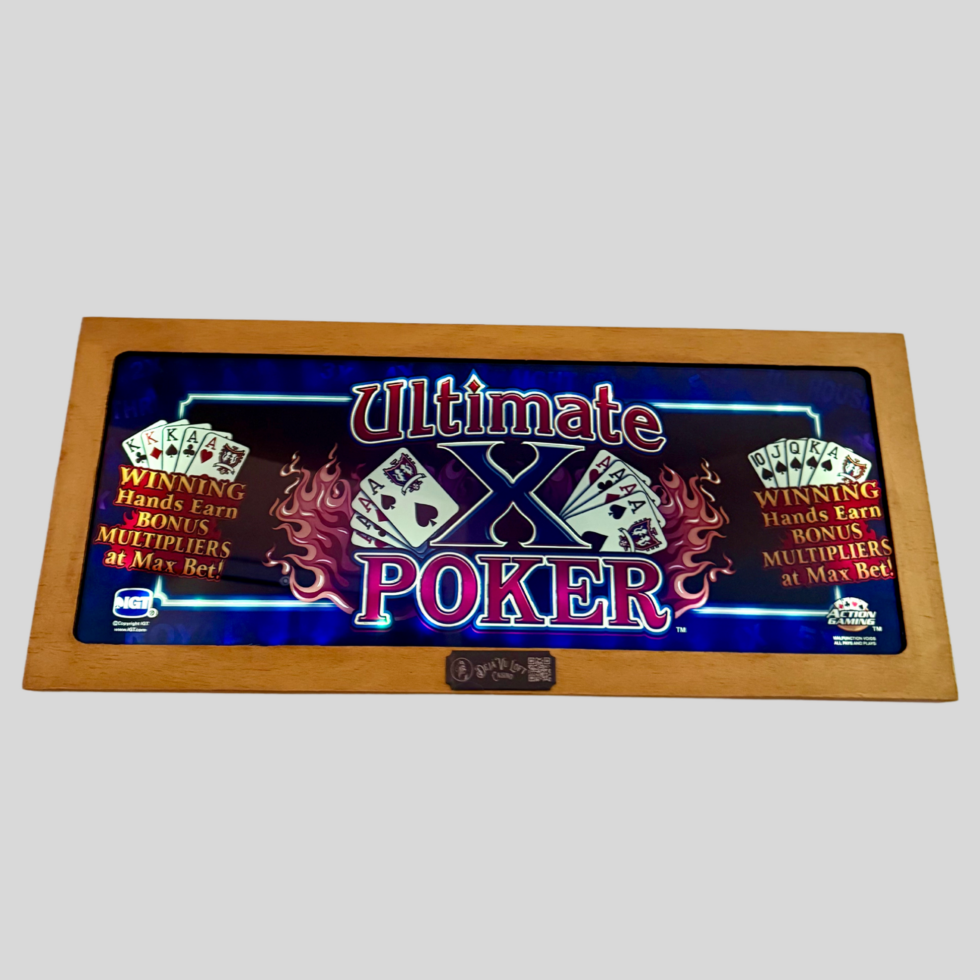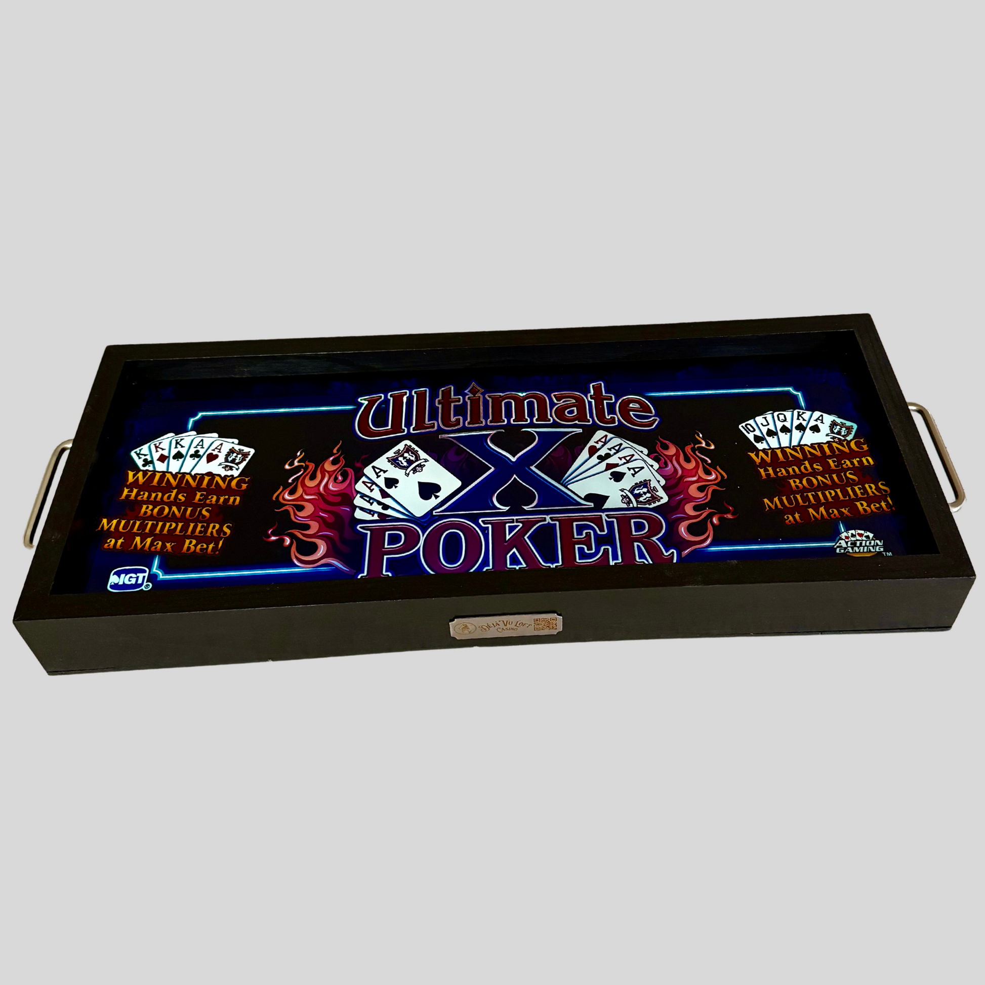 The Ultimate X Poker Slot Glass is a bold and fiery display piece that embodies high-stakes excitement! Featuring classic poker hands framed by blazing flames and a striking "X" at the center, this design exudes the thrill of bonus multipliers and big wins. The deep black background enhances the vivid red and gold accents, making it a standout addition to any collection. Perfect for poker lovers, casino enthusiasts, and those looking for a statement piece with a high-energy aesthetic!