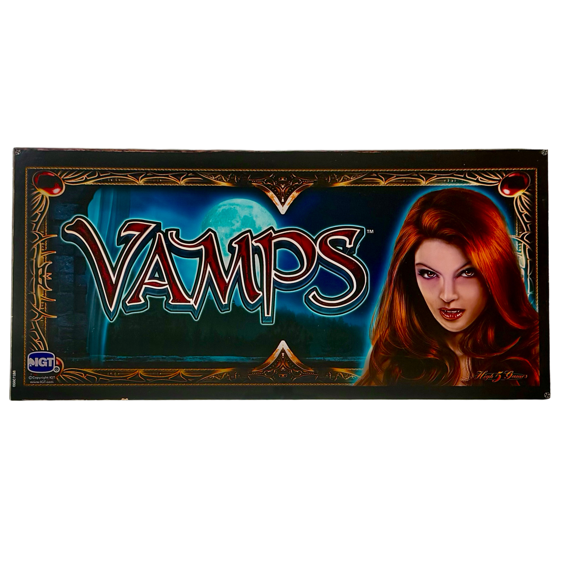 The Vamps Slot Glass is a bold and alluring piece featuring a fiery-haired vampire set against a haunting moonlit backdrop. The gothic-inspired typography, intricate border detailing, and eerie blue tones create a mysterious and supernatural aesthetic. The seductive yet fierce expression of the vampiress adds to the intrigue, making this slot glass a perfect addition for collectors, gothic décor enthusiasts, or anyone drawn to the allure of the undead.
